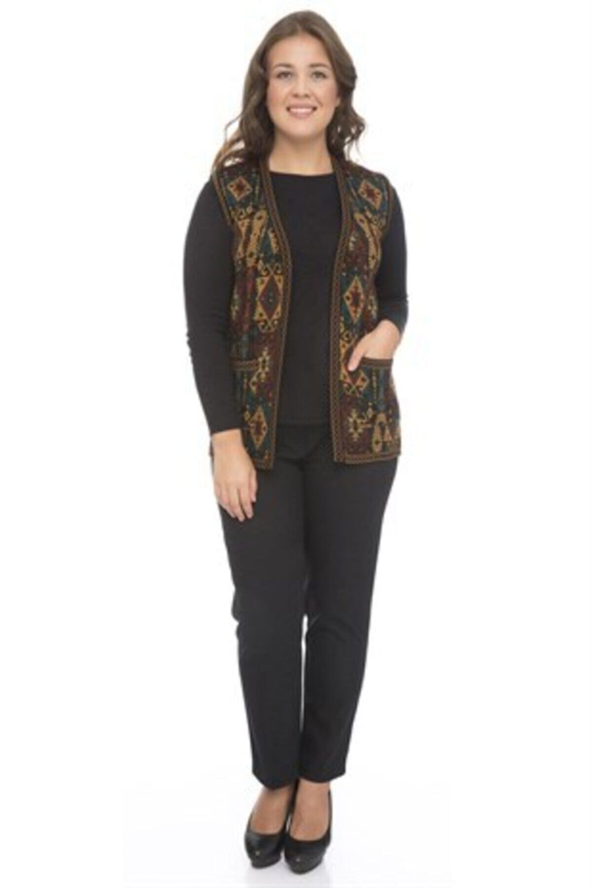 Kadın Kahverengi Ana Kilim Desen Yelek 1052 Kadın Kahverengi Ana Kilim Desen Yelek 1052 M