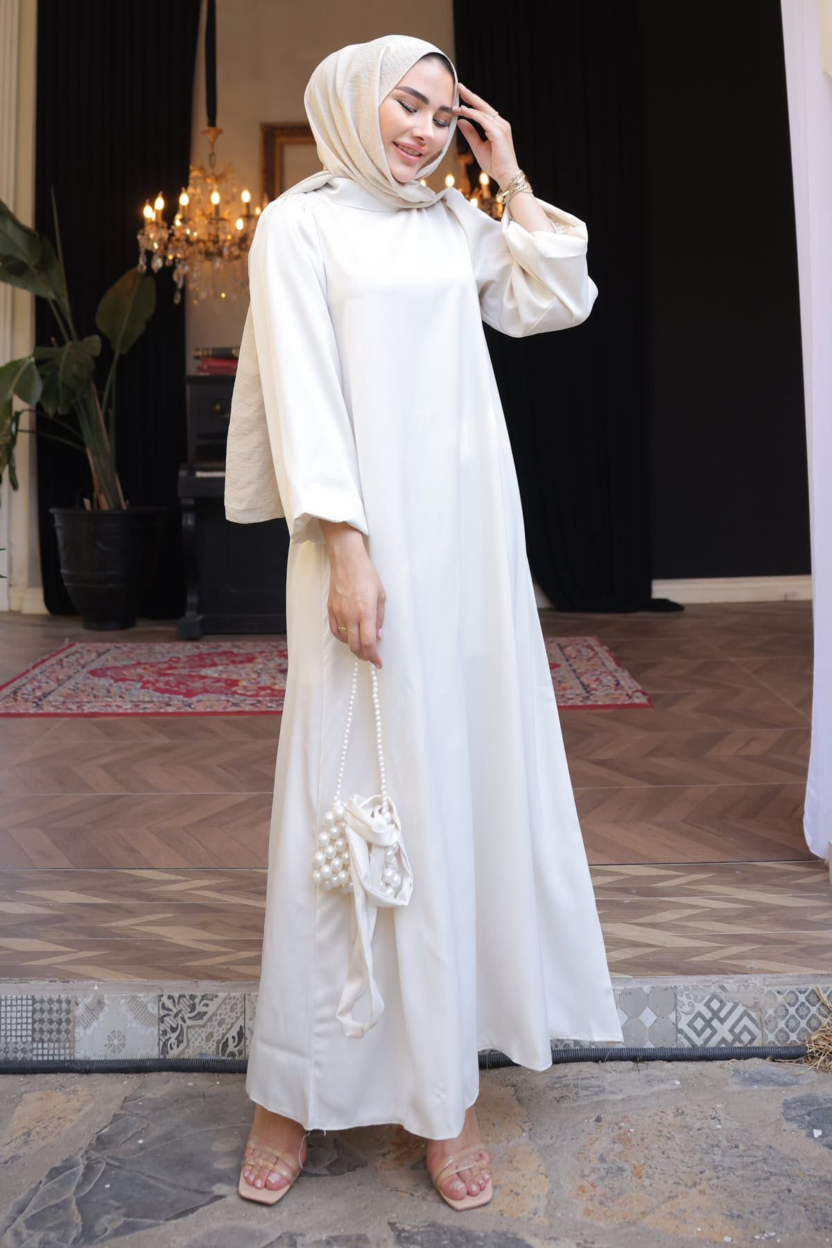 Taş Hakim Yaka Balon Kol Saten Abiye Elbise Taş Hakim Yaka Balon Kol Saten Abiye Elbise IMJ003960 XL