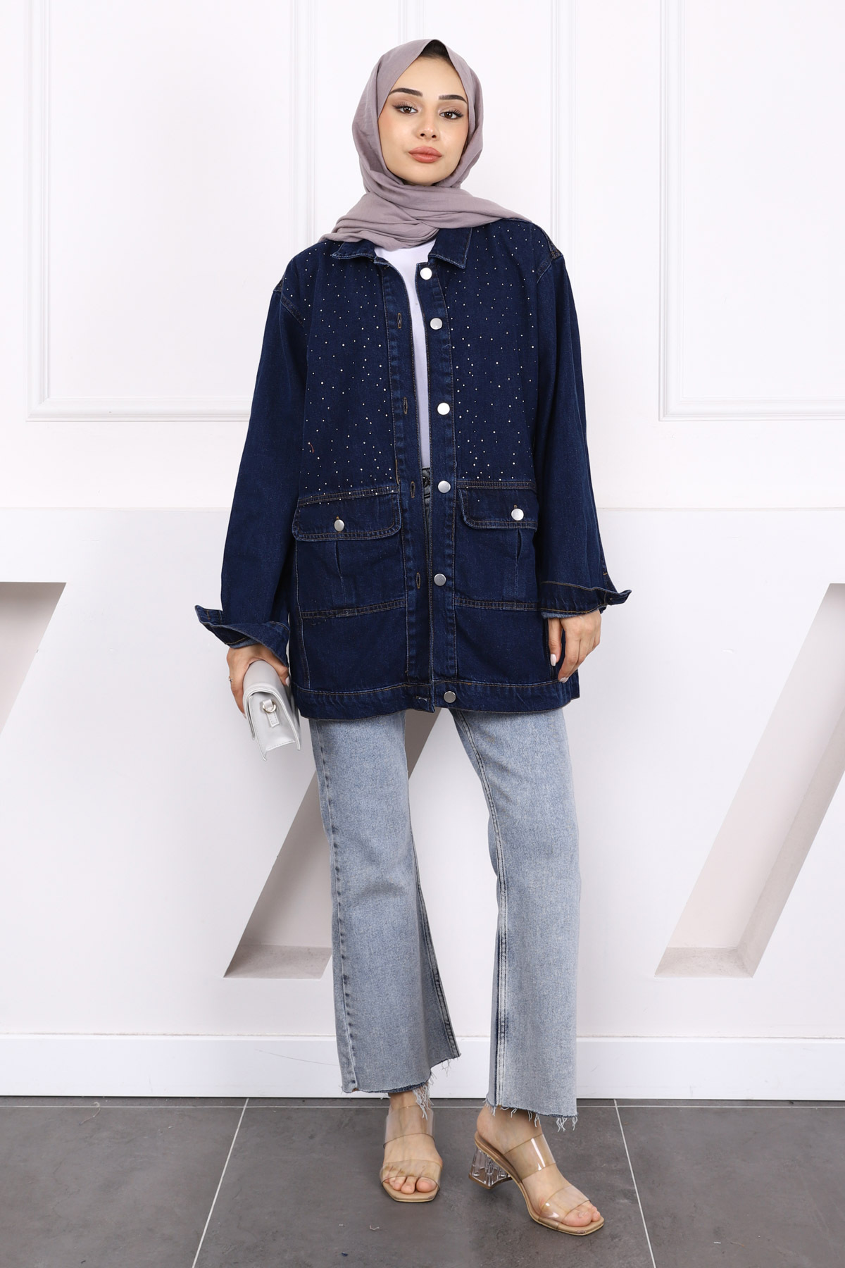 Siyah Taş İşlemeli Kot Ceket Siyah Taş İşlemeli Kot Ceket IMJ005830 42