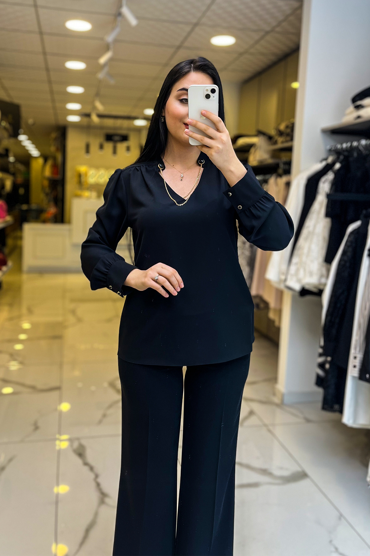 Ekol Siyah Aksesuar Detaylı Bluz Ekol Siyah Aksesuar Detaylı Bluz 31188SYH 44