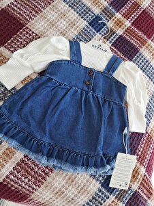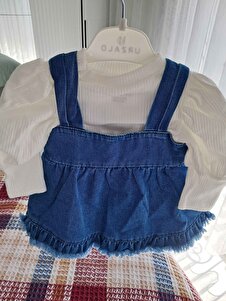Püsküllü Kot Jile Elbise %100 Pamuk Likralı Ribana Balon Bluz Lüks Jean Kız Bebek Takım Püsküllü Kot Jile Elbise %100 Pamuk Likralı Ribana Balon Bluz Lüks Jean Kız Bebek Takım JT5005 12-18 AY