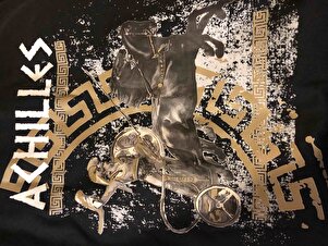 Unısex Siyah Mitoloji Akhilleus Baskılı Tişört Unısex Siyah Mitoloji Akhilleus Baskılı Tişört GNC 100 XL