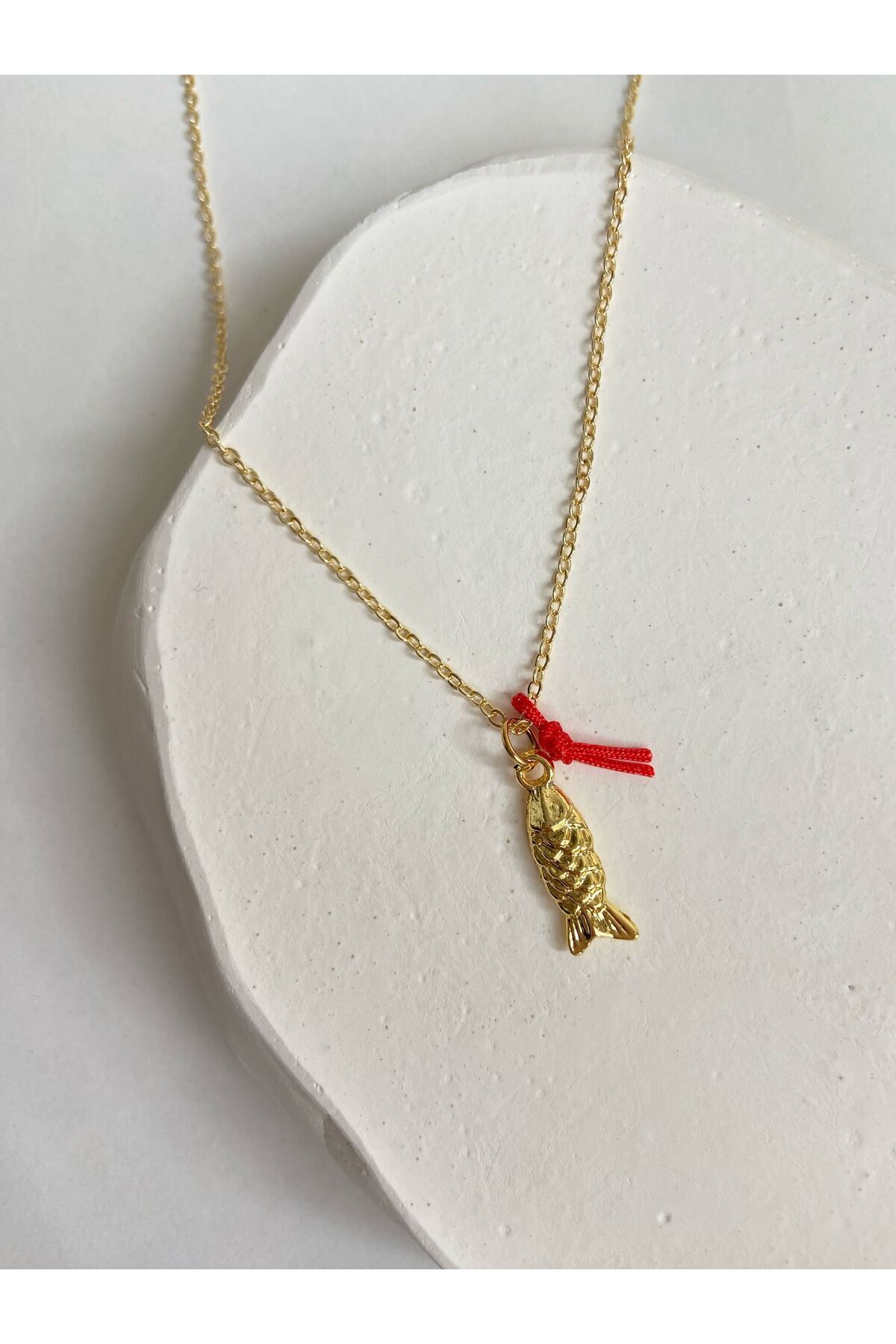 Balık Ve Kırmızı Kurdela Charm 45 Cm Altın Kaplama Gold Kolye Balık Ve Kırmızı Kurdela Charm 45 Cm Altın Kaplama Gold Kolye 0503202519 S
