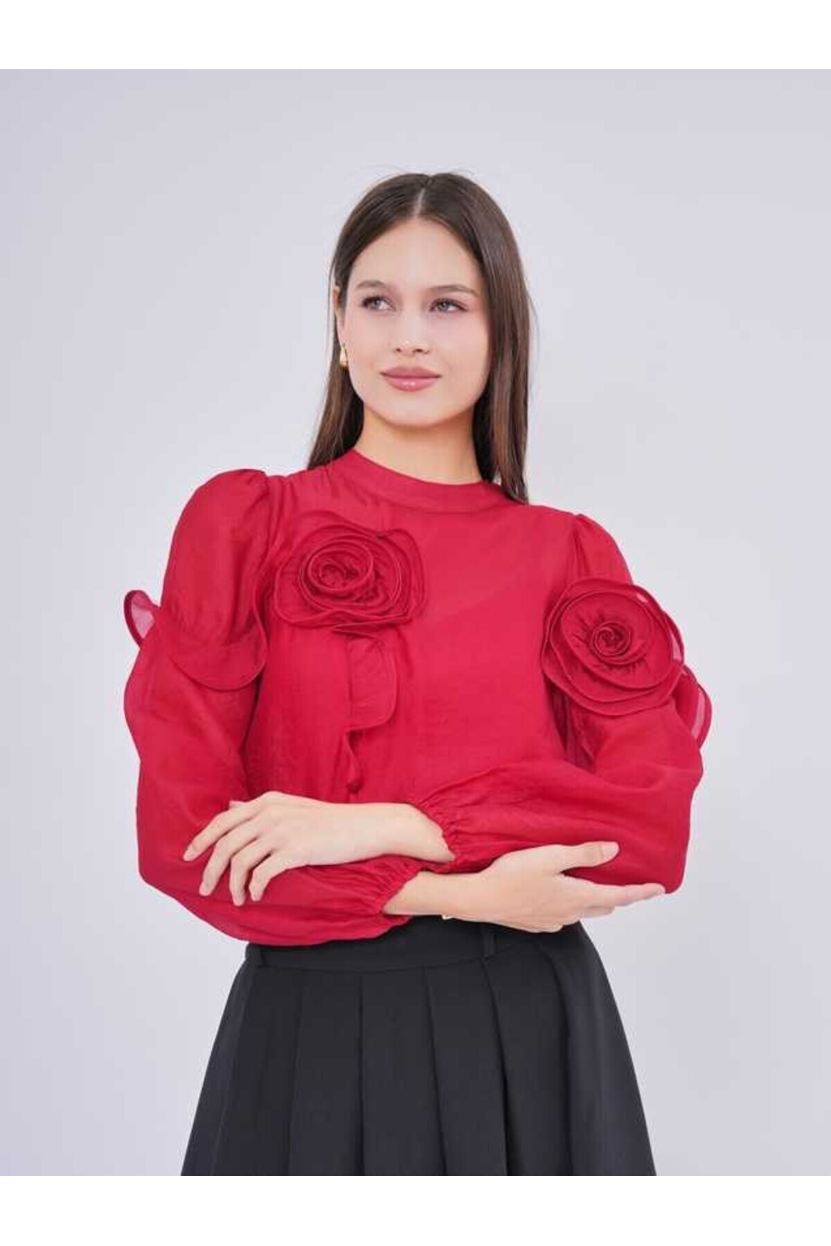 16778 Broşlu Kolları Şifon Pliseli Jesika Bluz (R) (B102) 16778 Broşlu Kolları Şifon Pliseli Jesika Bluz (R) (B102) S24.16778-01 48