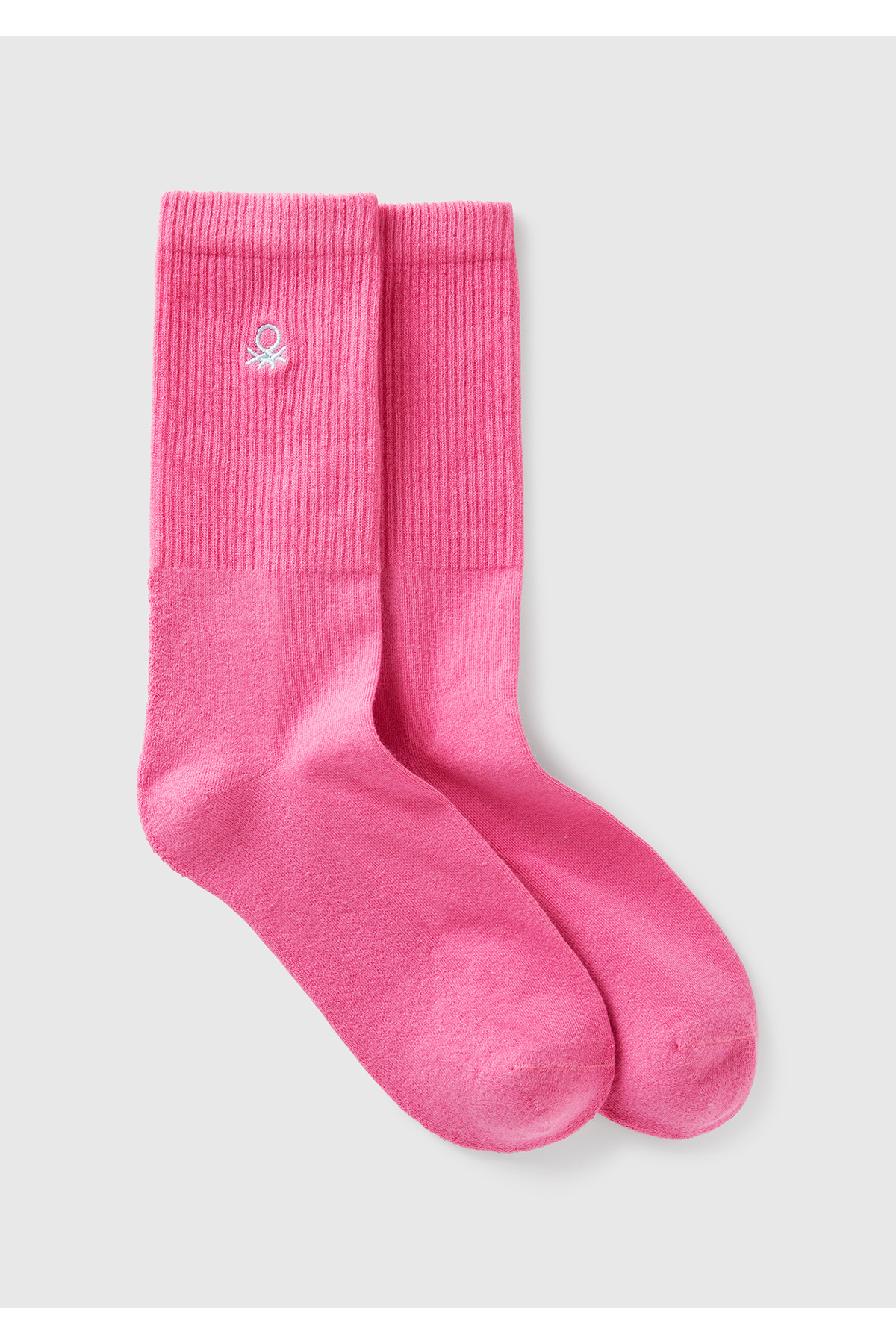 Unisex Beyaz Benetton Logolu Soket Çorap Unisex Beyaz Benetton Logolu Soket Çorap 625P6AO42701Q L