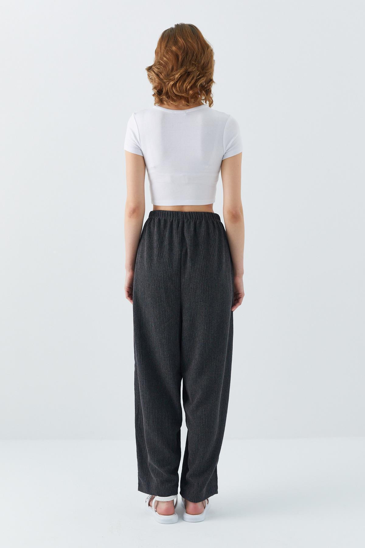 4584 Kadın Beli Lastikli Örme Şalvar Pantolon Antrasit 4584 Kadın Beli Lastikli Örme Şalvar Pantolon Antrasit Y25PNT4584 L