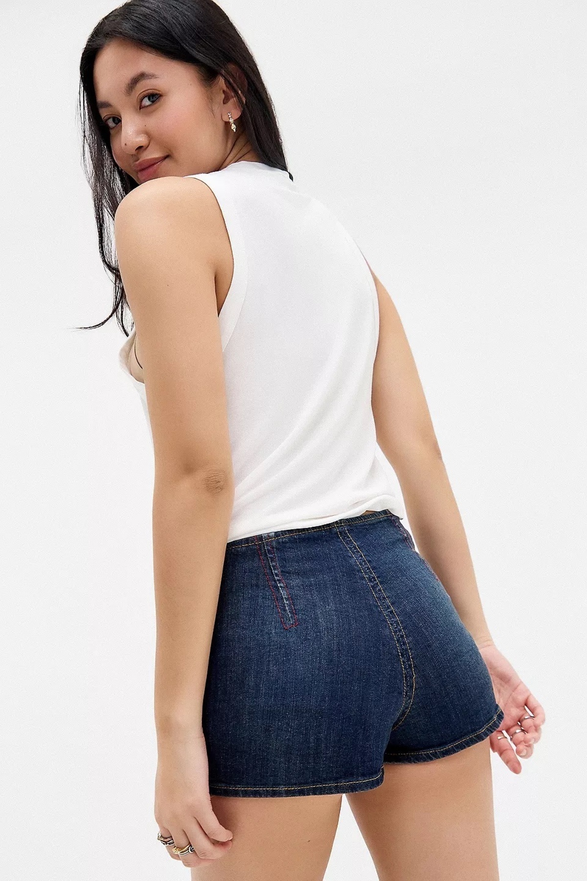 Lacivert Kemer Detaylı Denim Mini Şort Etek Lacivert Kemer Detaylı Denim Mini Şort Etek DenimSkort 2XL