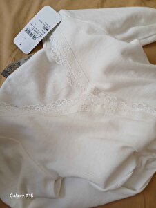 Kadın Beyaz Dantel Detaylı Eteği Oval Esnek Bluz BLZ-19002872 Kadın Beyaz Dantel Detaylı Eteği Oval Esnek Bluz BLZ-19002872 L