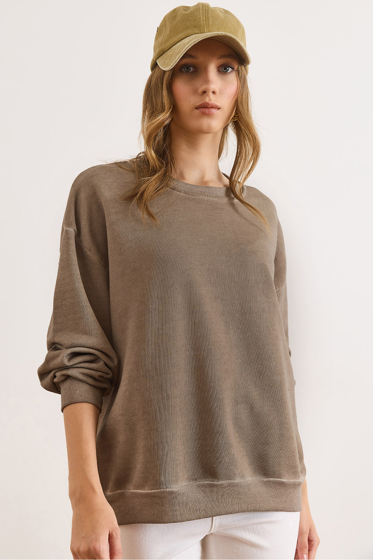Kadın Gri Modal İçerikli Yıkamalı Sweatshirt SWT-19000715 Kadın Gri Modal İçerikli Yıkamalı Sweatshirt SWT-19000715 L