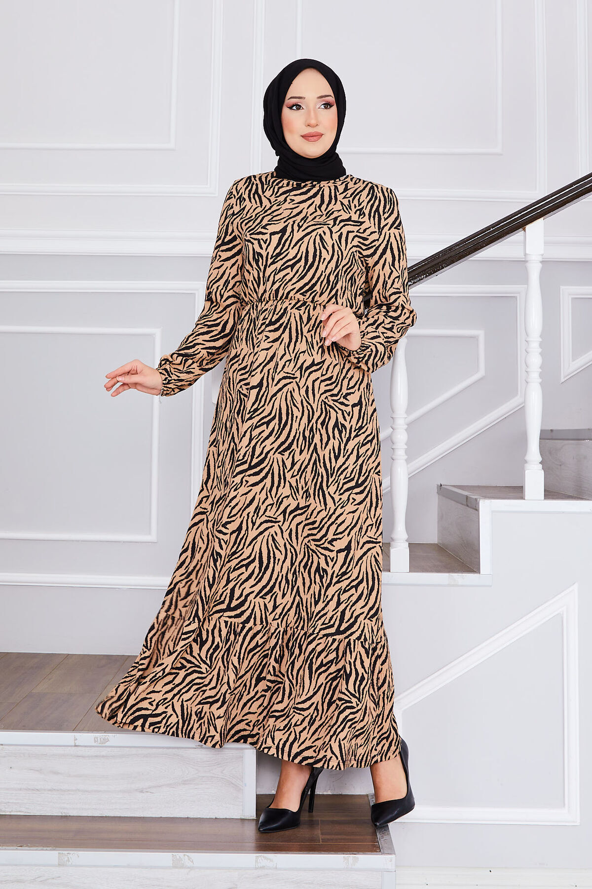 Leopar Desenli Kemerli Bürümcük Tesettür Elbise Leopar Desenli Kemerli Bürümcük Tesettür Elbise 553528-125M00830101 48
