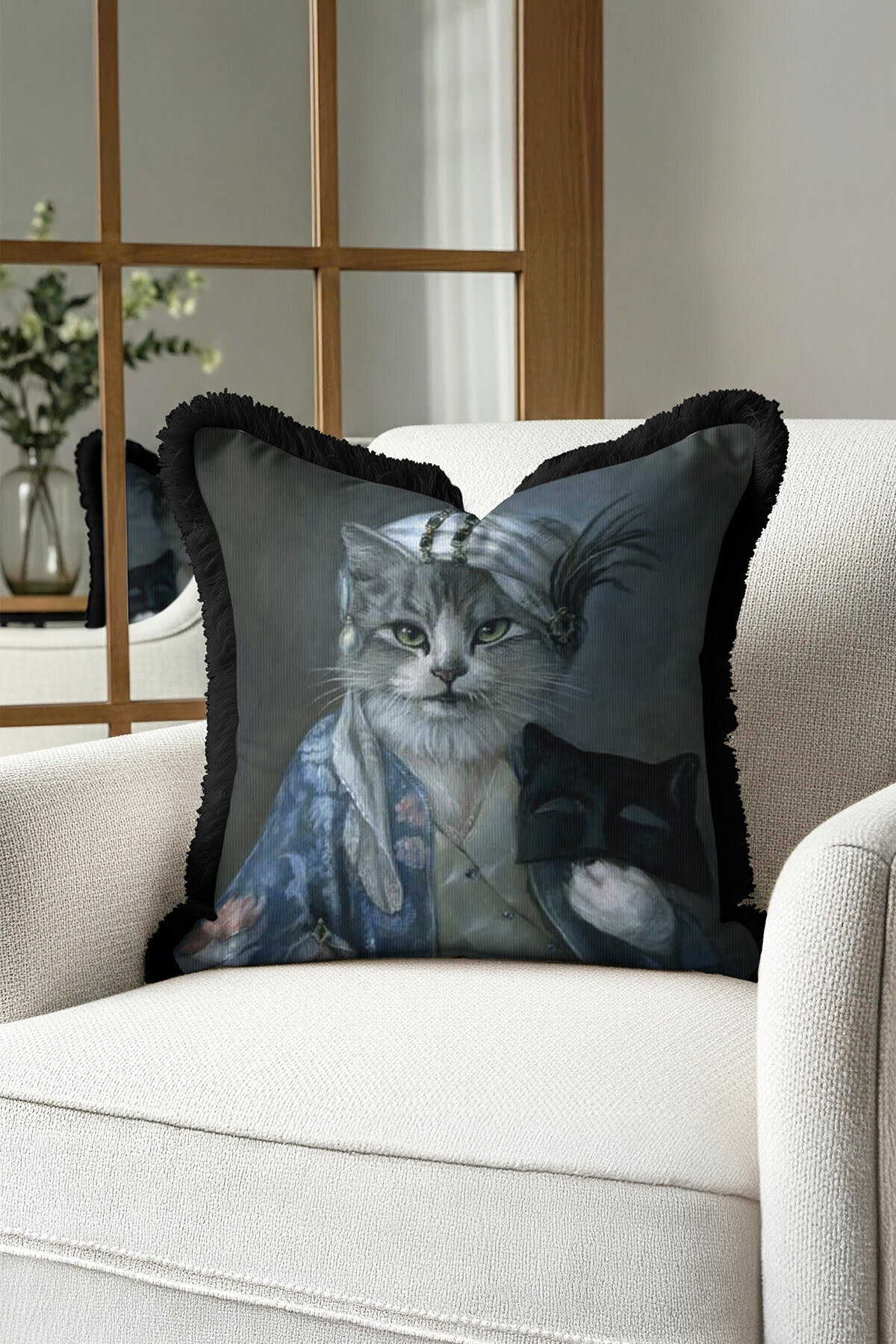 Kedi Desenli Lüks Dekoratif Hayvan Figürlü Saçaklı Avangard Kadife Kırlent Kılıfı Sanatsal Tasarım Kedi Desenli Lüks Dekoratif Hayvan Figürlü Saçaklı Avangard Kadife Kırlent Kılıfı Sanatsal Tasarım ANIMAL 43 x 43
