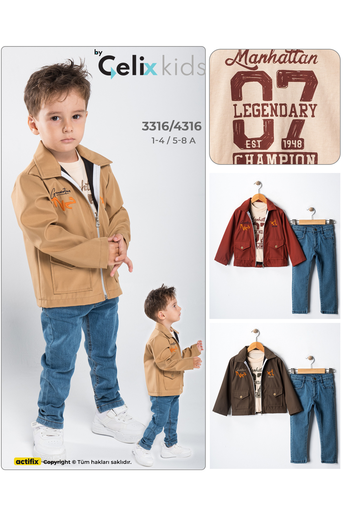 Erkek Çocuk 3'lü Bayramlık Takım Ceket Tshirt Kot Pantolon Erkek Çocuk 3'lü Bayramlık Takım Ceket Tshirt Kot Pantolon 3316 - 4316 8 Yaş