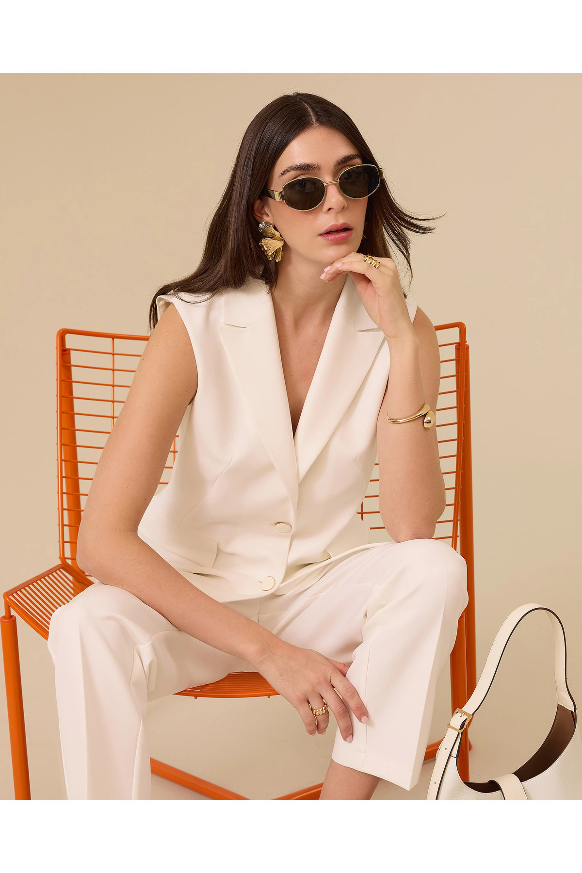 Yuvarlak Yaka Gold Düğme Detaylı Yelek Yuvarlak Yaka Gold Düğme Detaylı Yelek 10002511110001-SYH 42