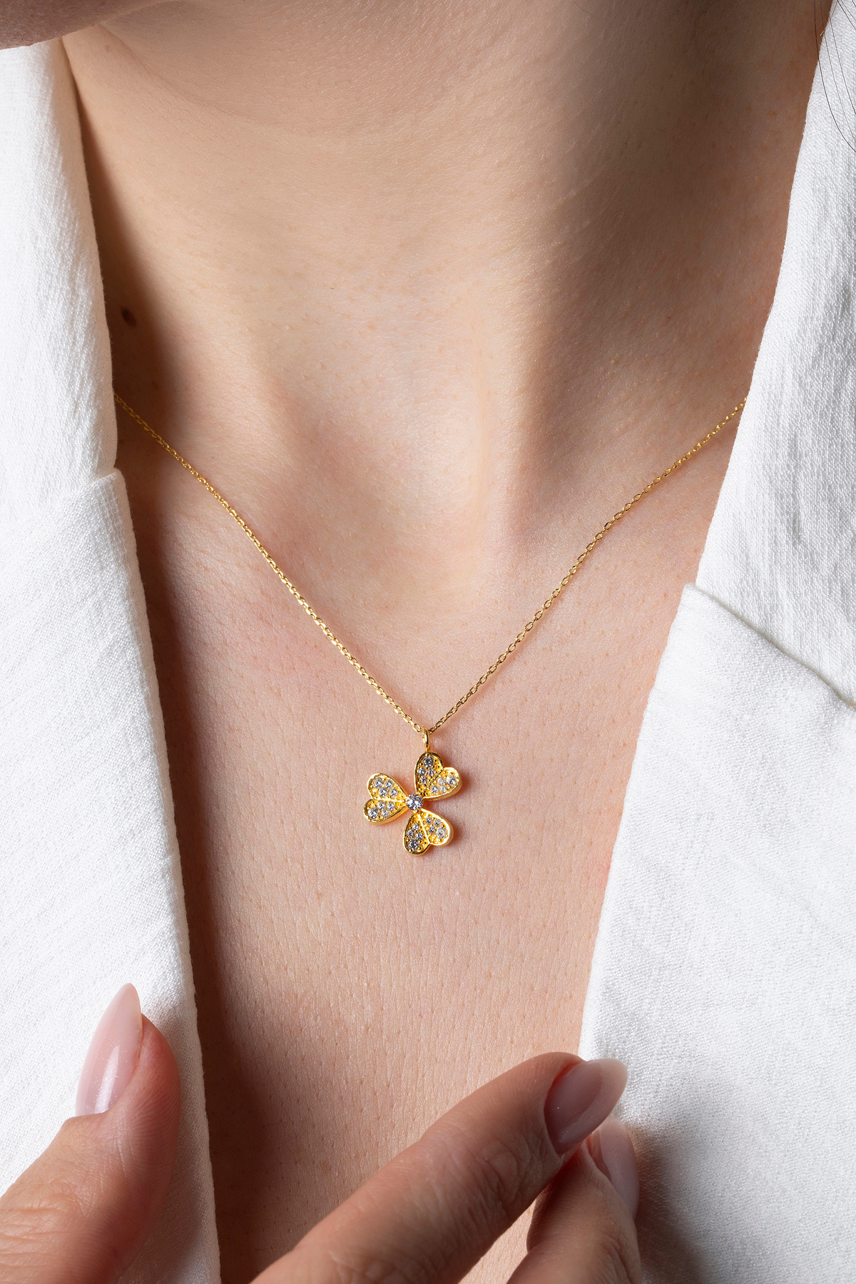 925 Ayar Gümüş Kalpli Lotus Model Kolye- Zirkon Taşlı Yonca Kolye 925 Ayar Gümüş Kalpli Lotus Model Kolye- Zirkon Taşlı Yonca Kolye ELKAB92324 تک سایز
