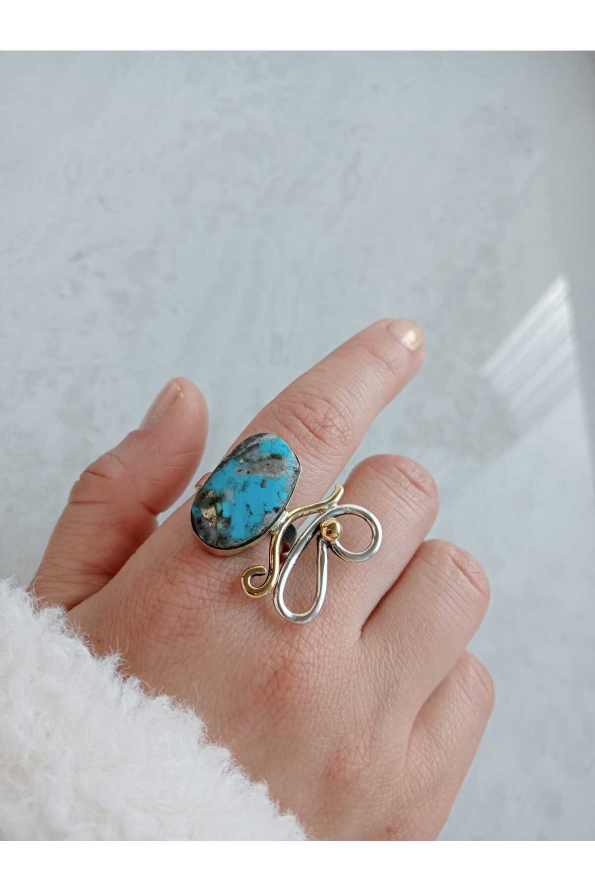Papila Silver Piritli İran Nişabur Firuze Ayarlanabilir Tasarım Gümüş Yüzük Papila Silver Piritli İran Nişabur Firuze Ayarlanabilir Tasarım Gümüş Yüzük PS0246 18