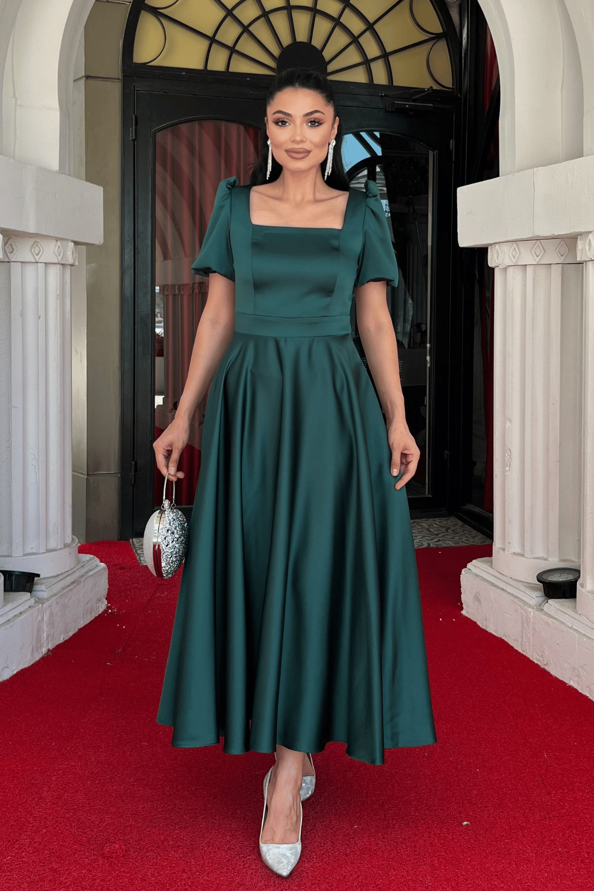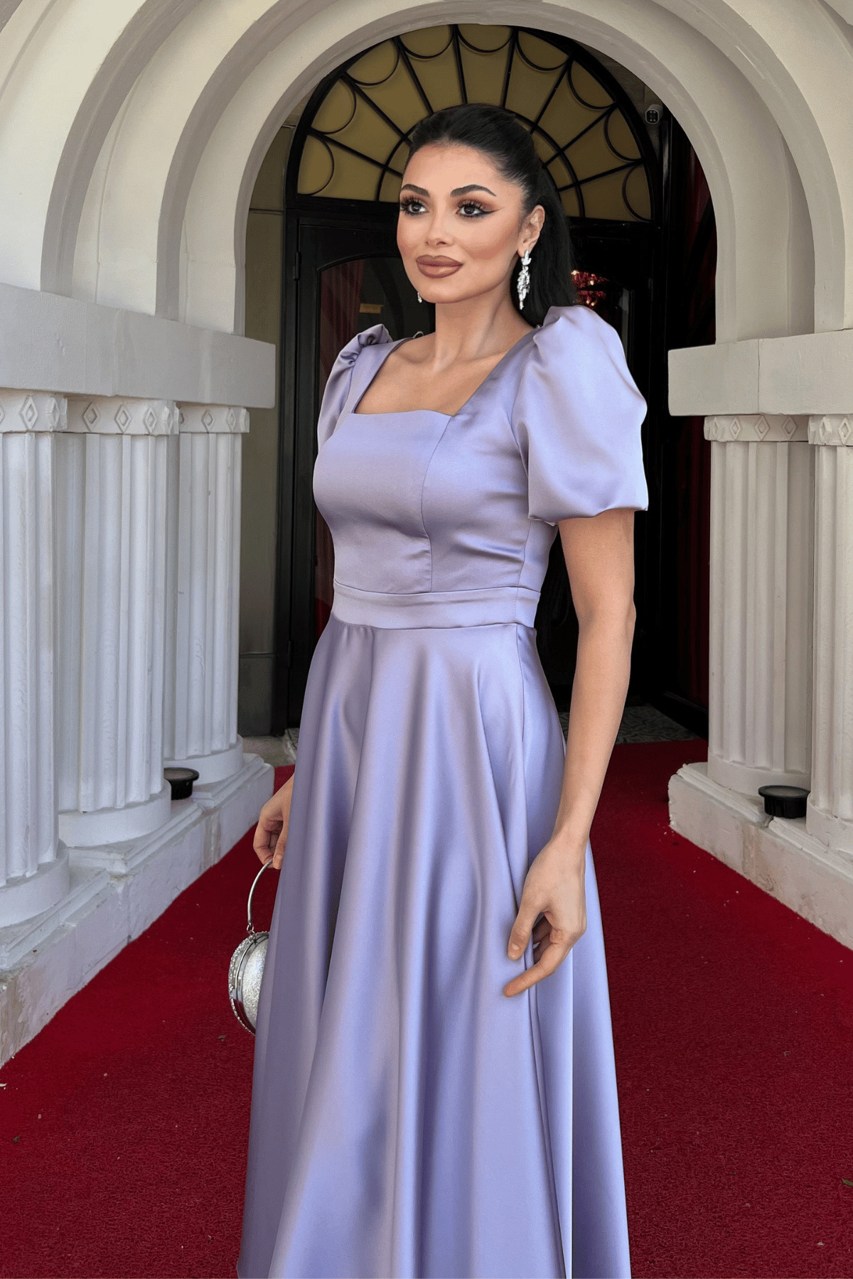 Saten Kumaş Kare Yaka Balon Kol Midi Elbise - LİLA Saten Kumaş Kare Yaka Balon Kol Midi Elbise - LİLA GYM-2080 46