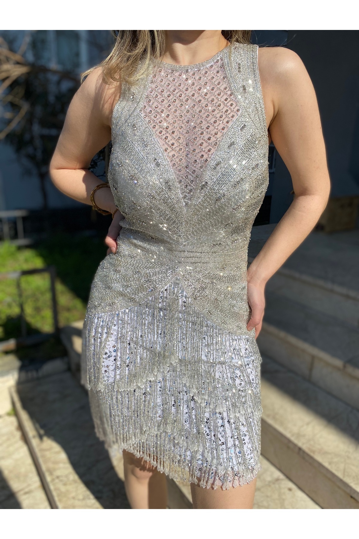Kadın Beyaz Taş Detaylı Dekolteli Kısa Abiye Elbise Kadın Beyaz Taş Detaylı Dekolteli Kısa Abiye Elbise K007 36