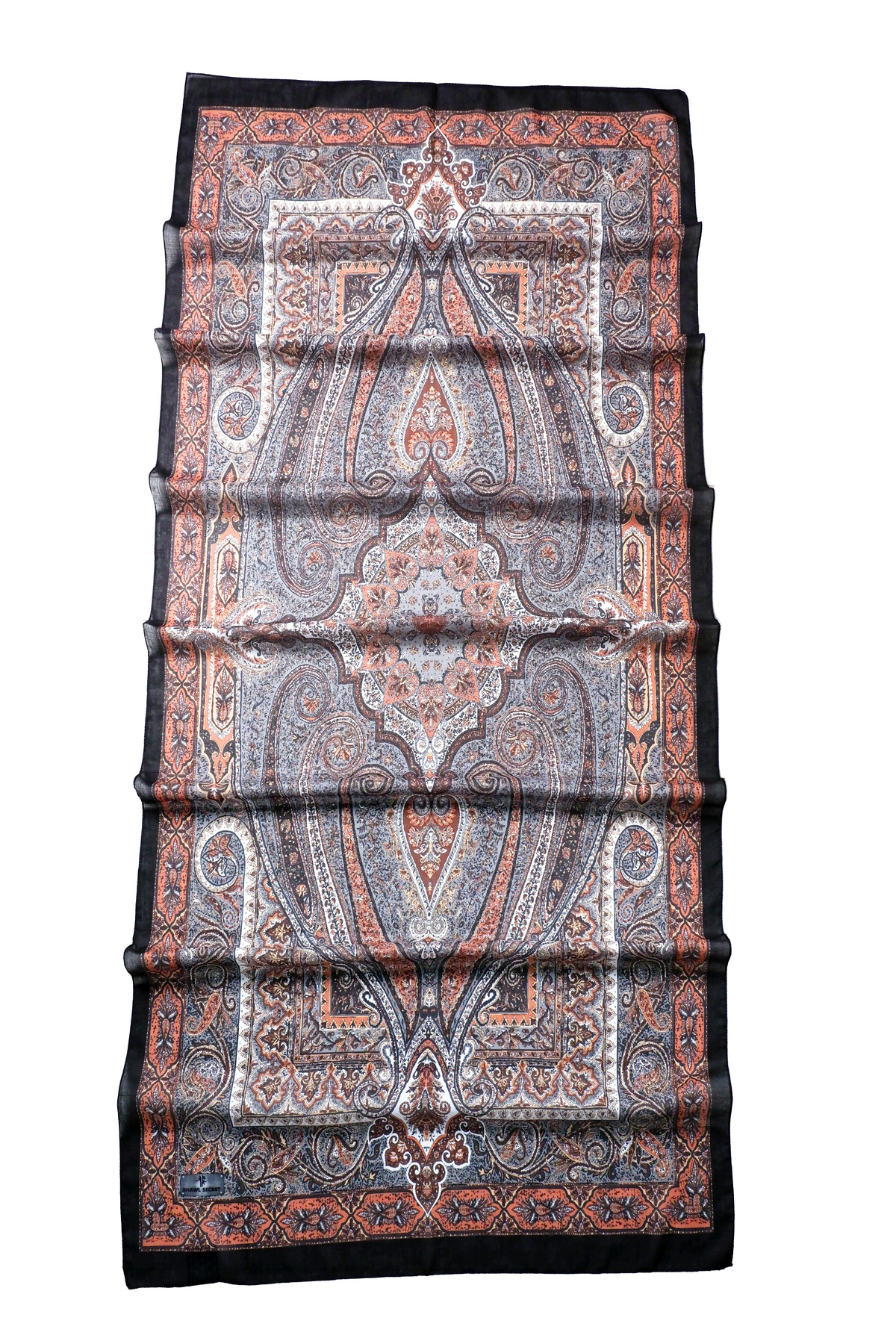 Retro Etnik Desen Soft Pamuklu Şal Siyah Turuncu Retro Etnik Desen Soft Pamuklu Şal Siyah Turuncu RETB01 75 x 180