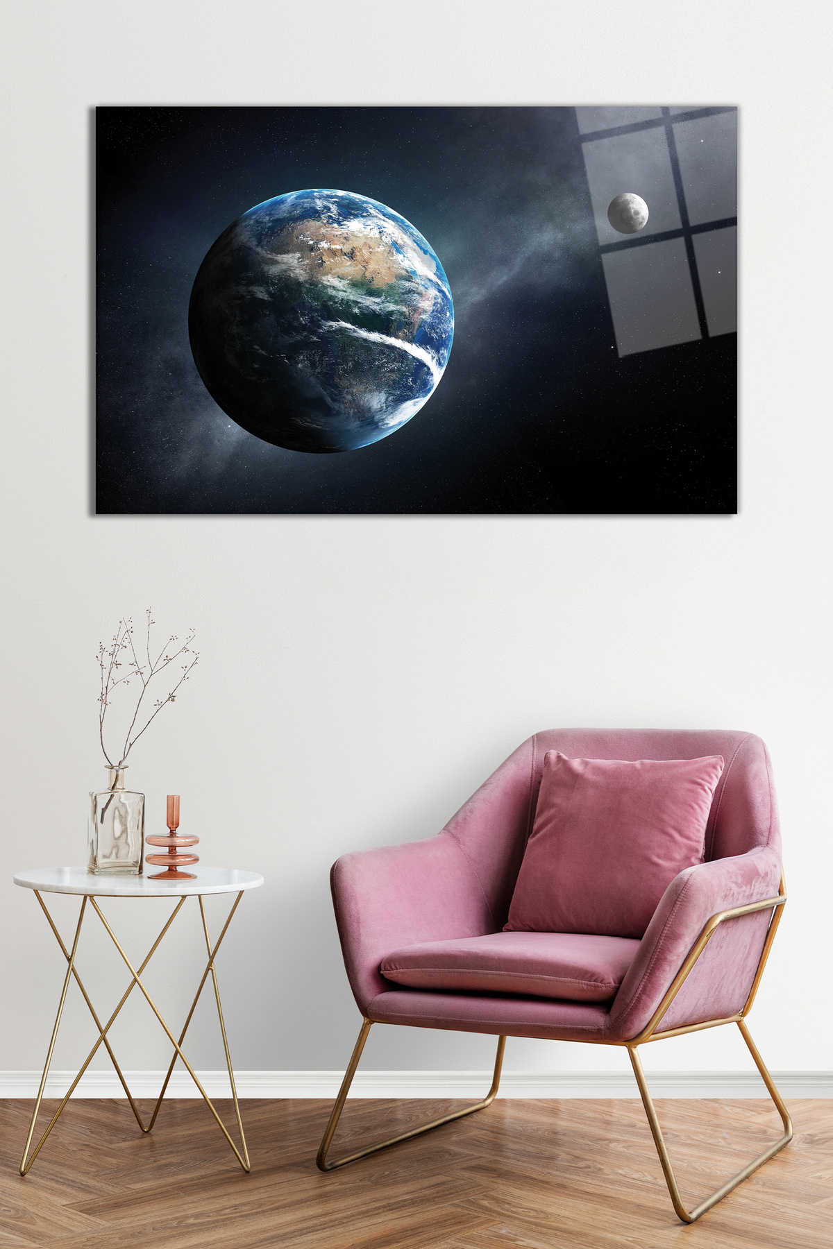 Uzayda Ay ve Dünya Görünümü Cam Tablo, Darbelere Dayanıklı Kırılmaz Cam, Hediyelik Uzayda Ay ve Dünya Görünümü Cam Tablo, Darbelere Dayanıklı Kırılmaz Cam, Hediyelik vtrvelo10947 105 x 70