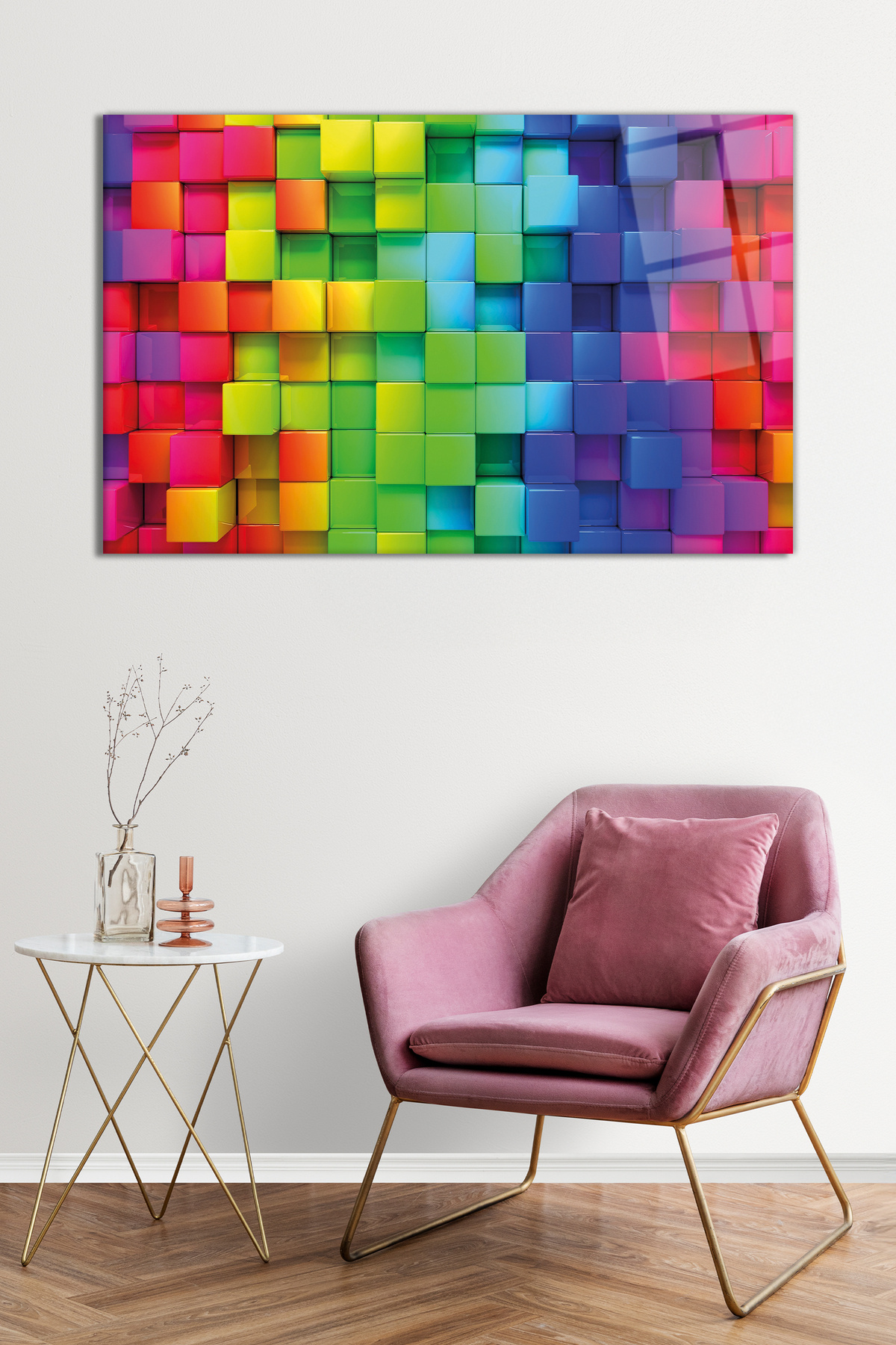 Renkli Küpler Cam Tablo, Darbelere Dayanıklı Kırılmaz Cam, Hediyelik Renkli Küpler Cam Tablo, Darbelere Dayanıklı Kırılmaz Cam, Hediyelik vtrvelo9641 105 x 70