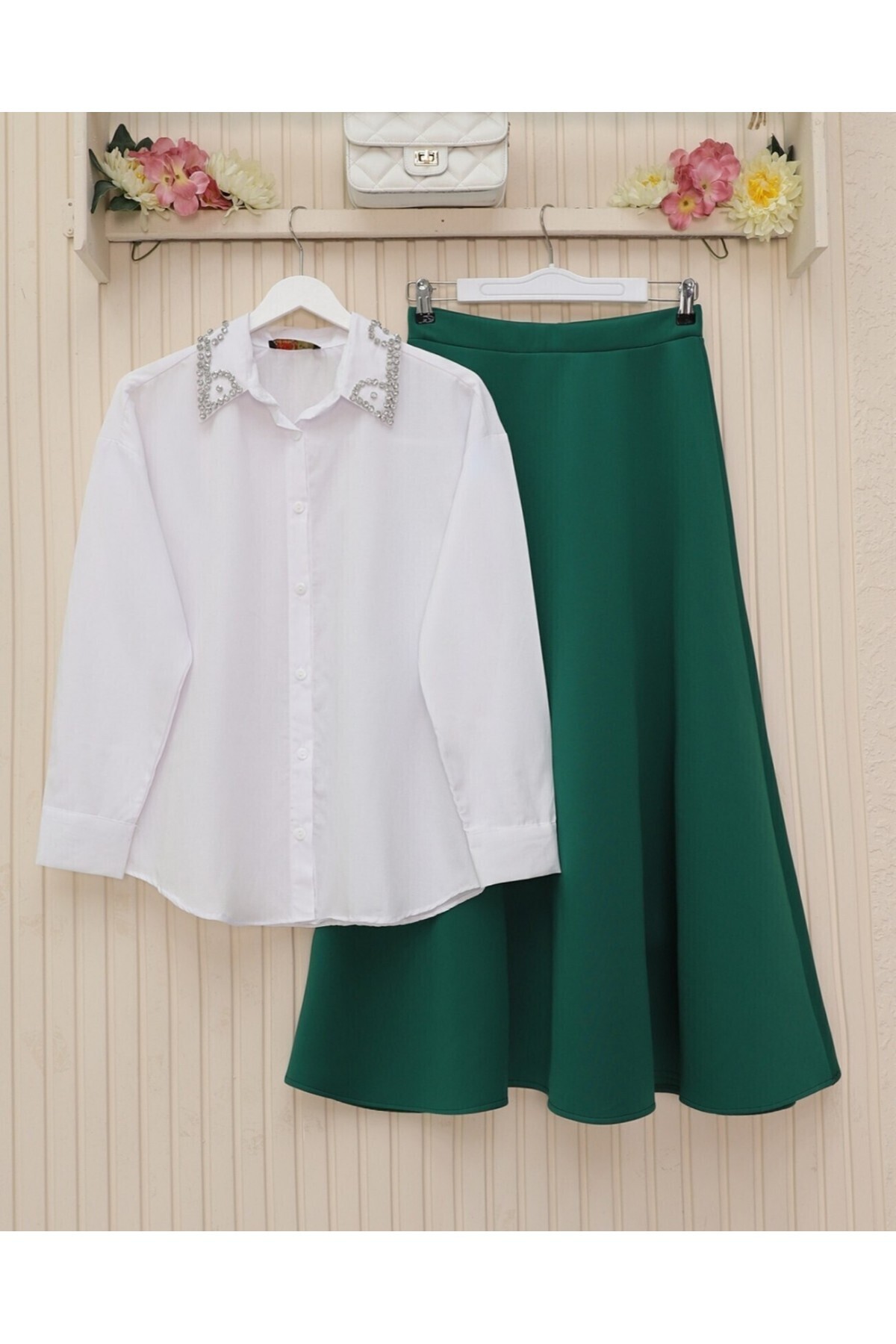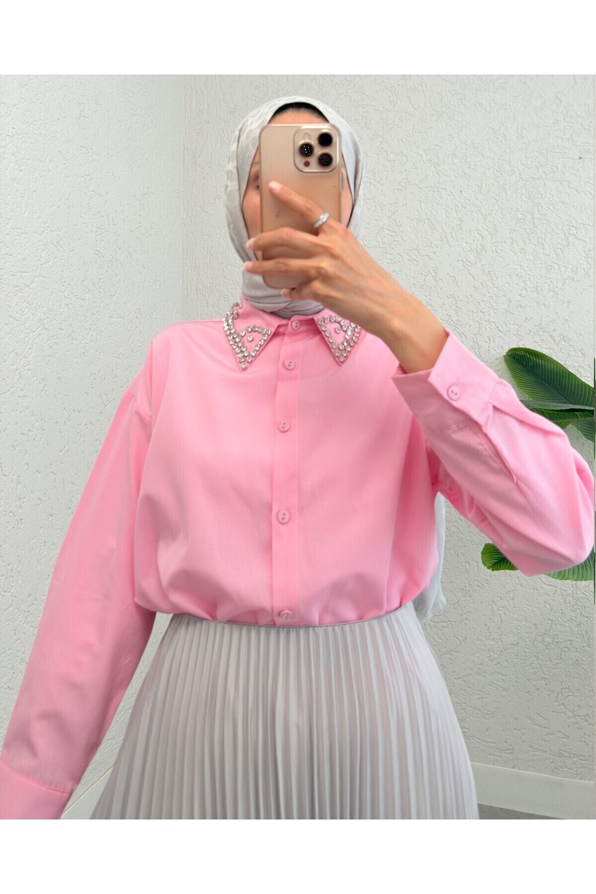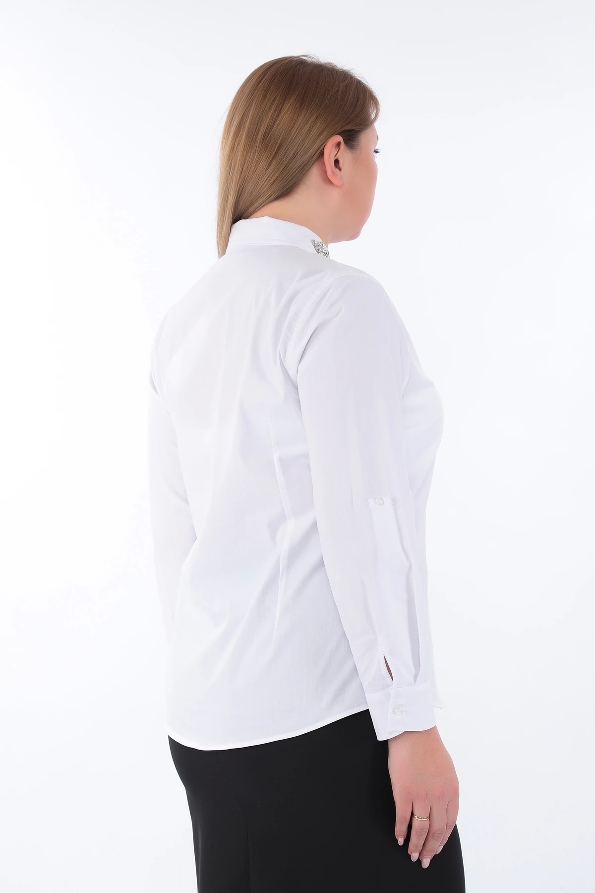 Kadın Yakası Taşlı Cotton Klasik Büyük Beden Ofis Gömlek - 44377 Kadın Yakası Taşlı Cotton Klasik Büyük Beden Ofis Gömlek - 44377 50