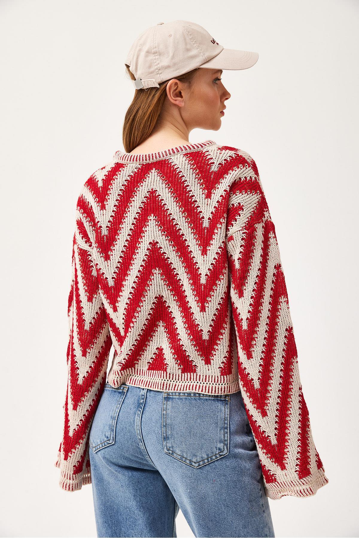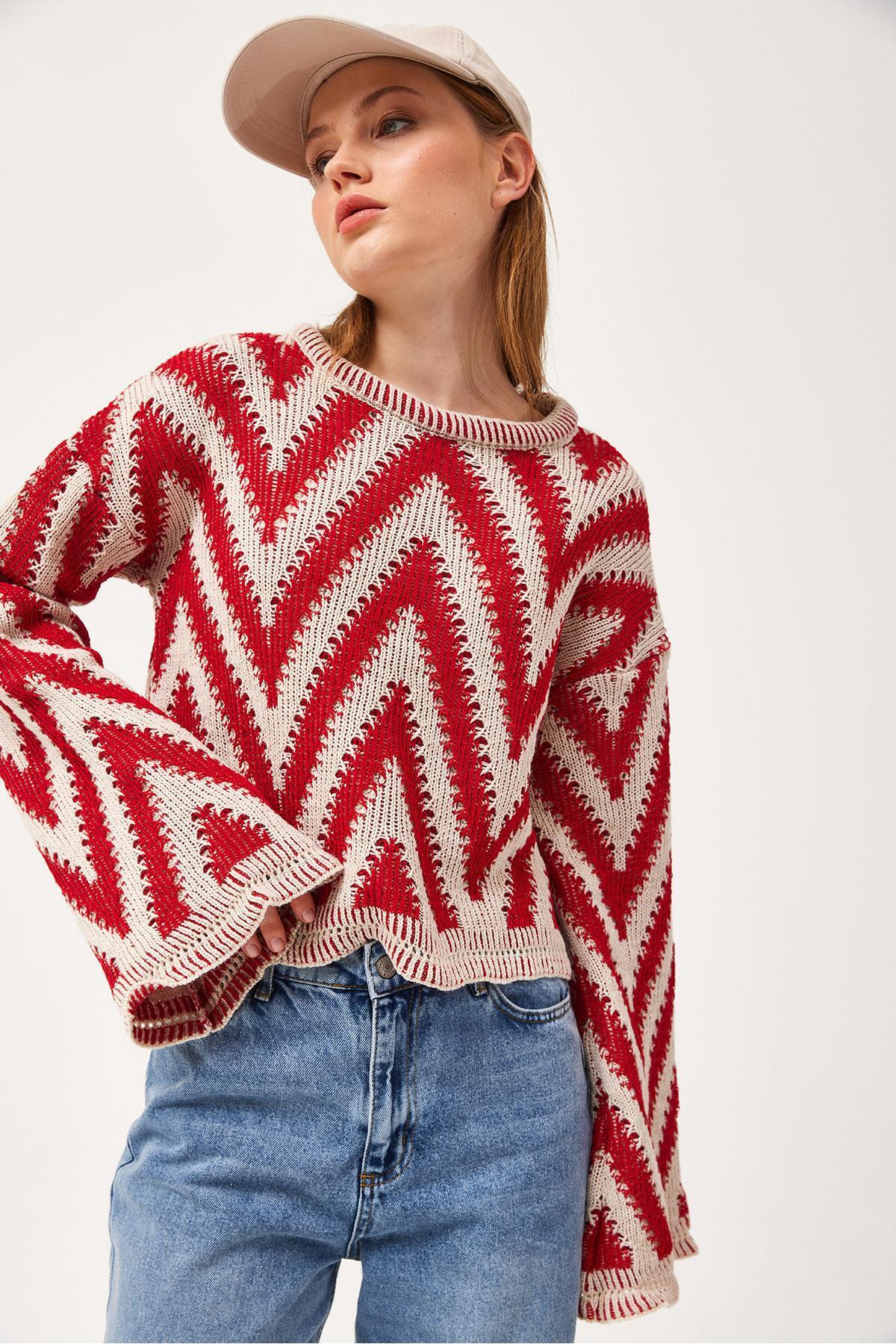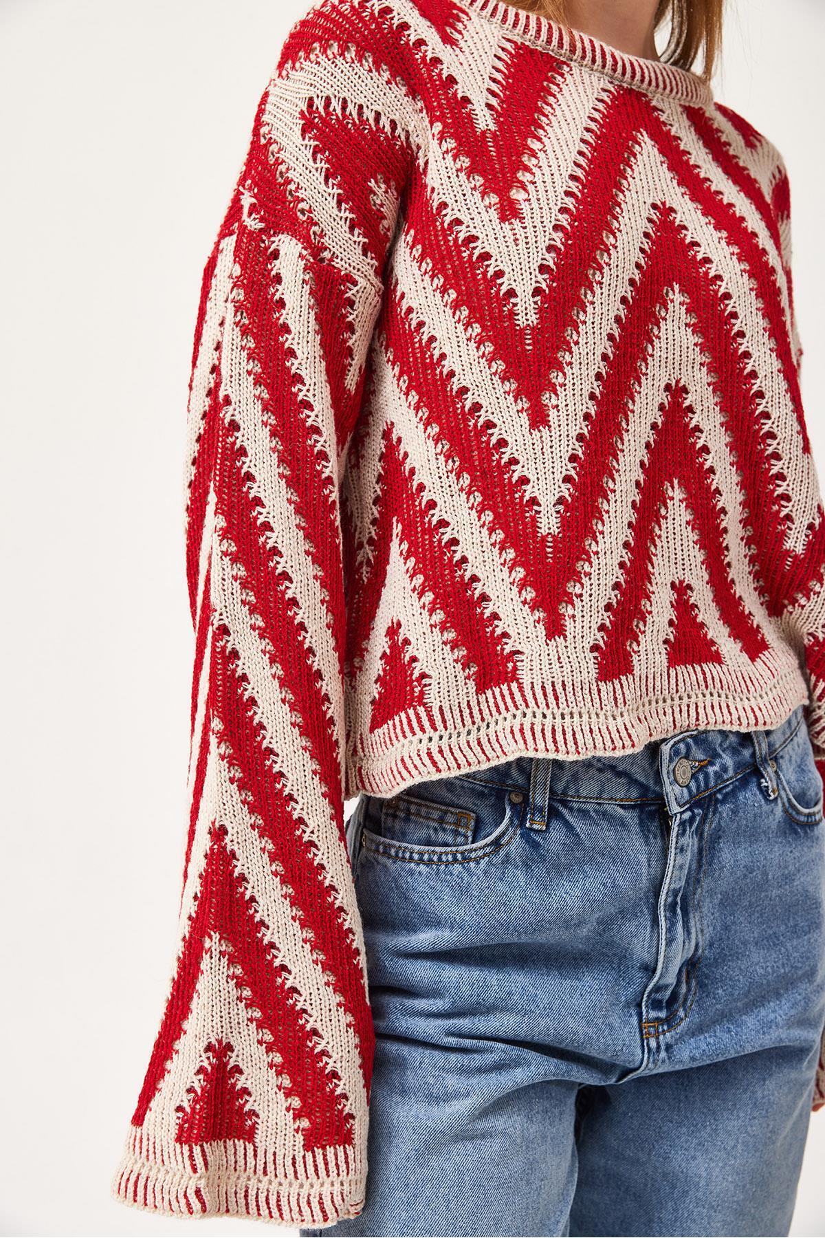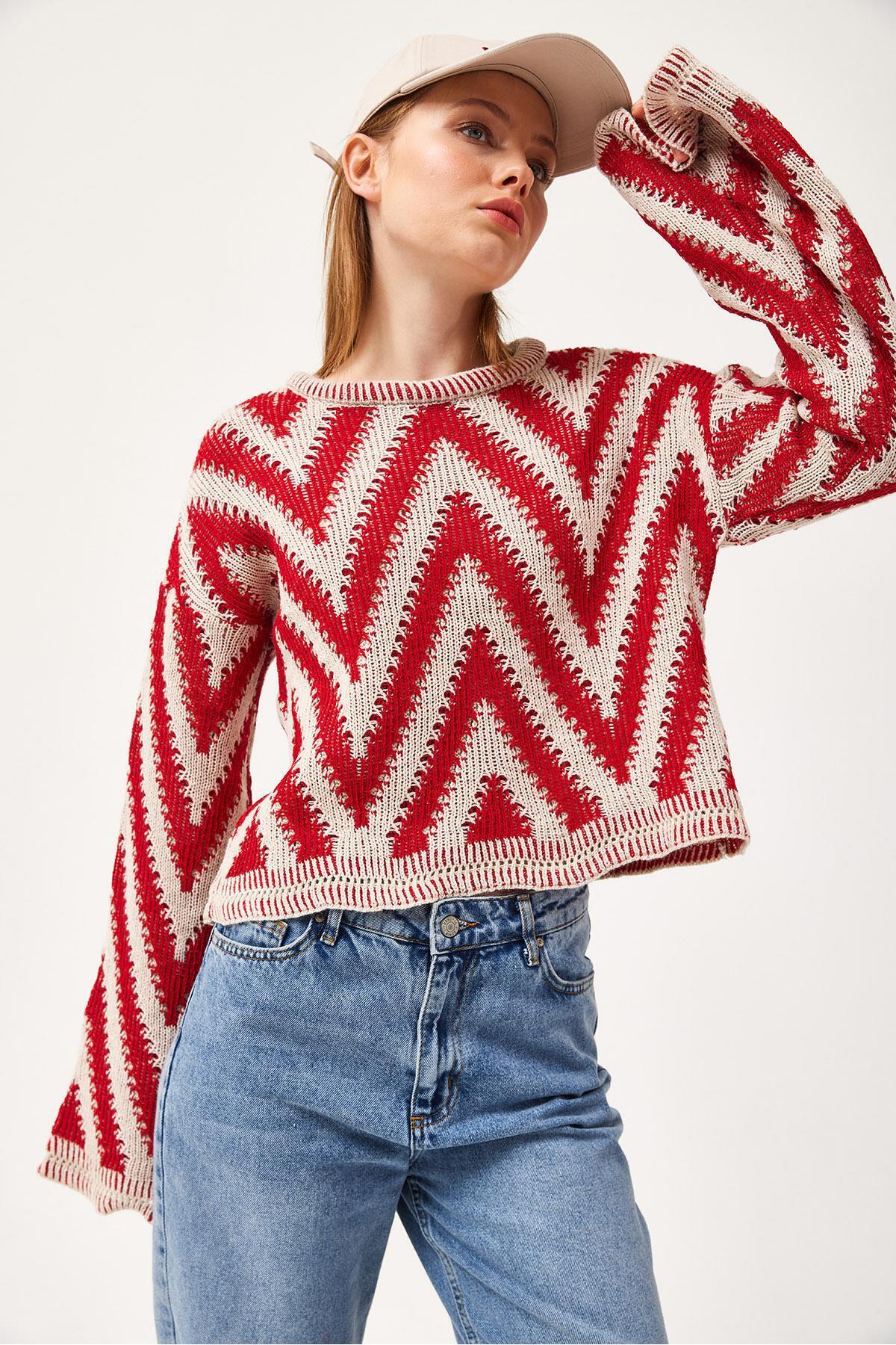 Zikzak Desen Kolu Katlamalı Triko Kazak Kırmızı Zikzak Desen Kolu Katlamalı Triko Kazak Kırmızı 250098KZK Standart