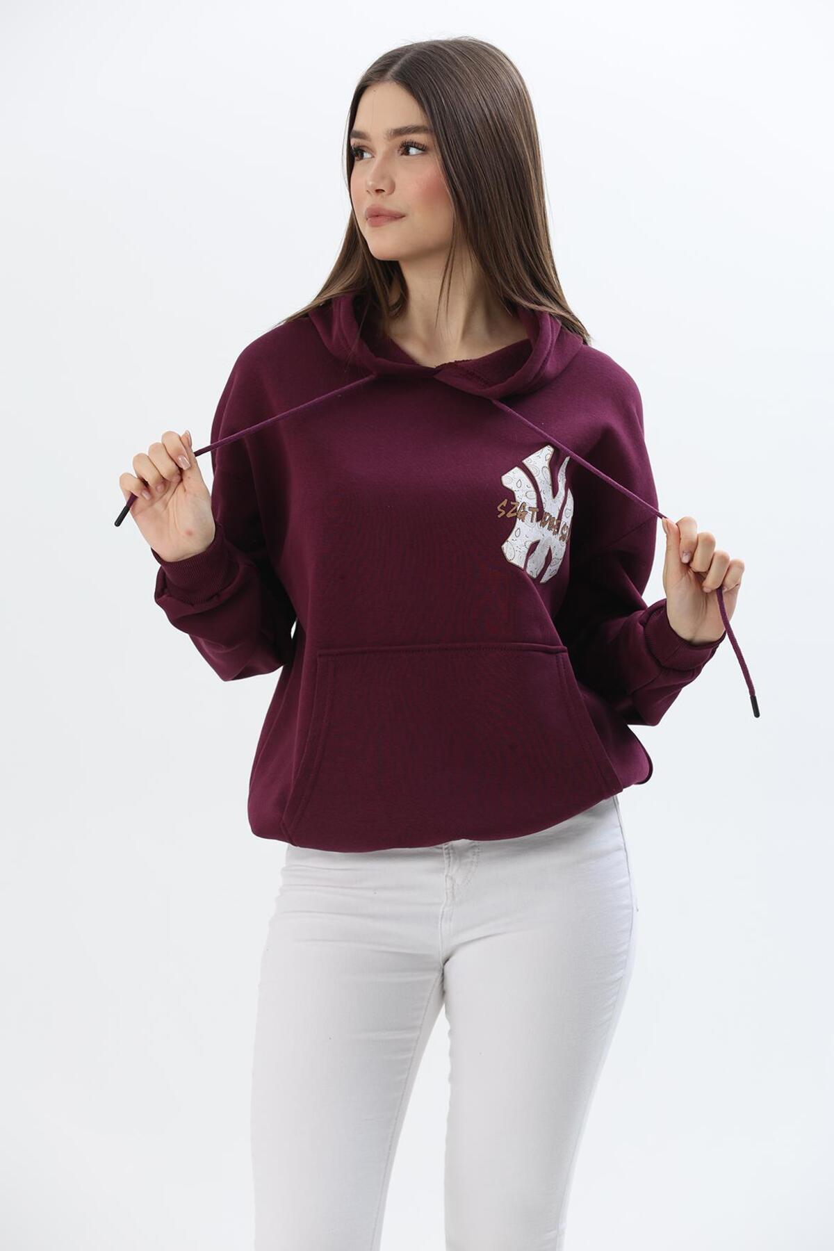 Üç İplik Baskılı Kapüşonlu Sweatshirt Bordo Üç İplik Baskılı Kapüşonlu Sweatshirt Bordo 250066SWT XL
