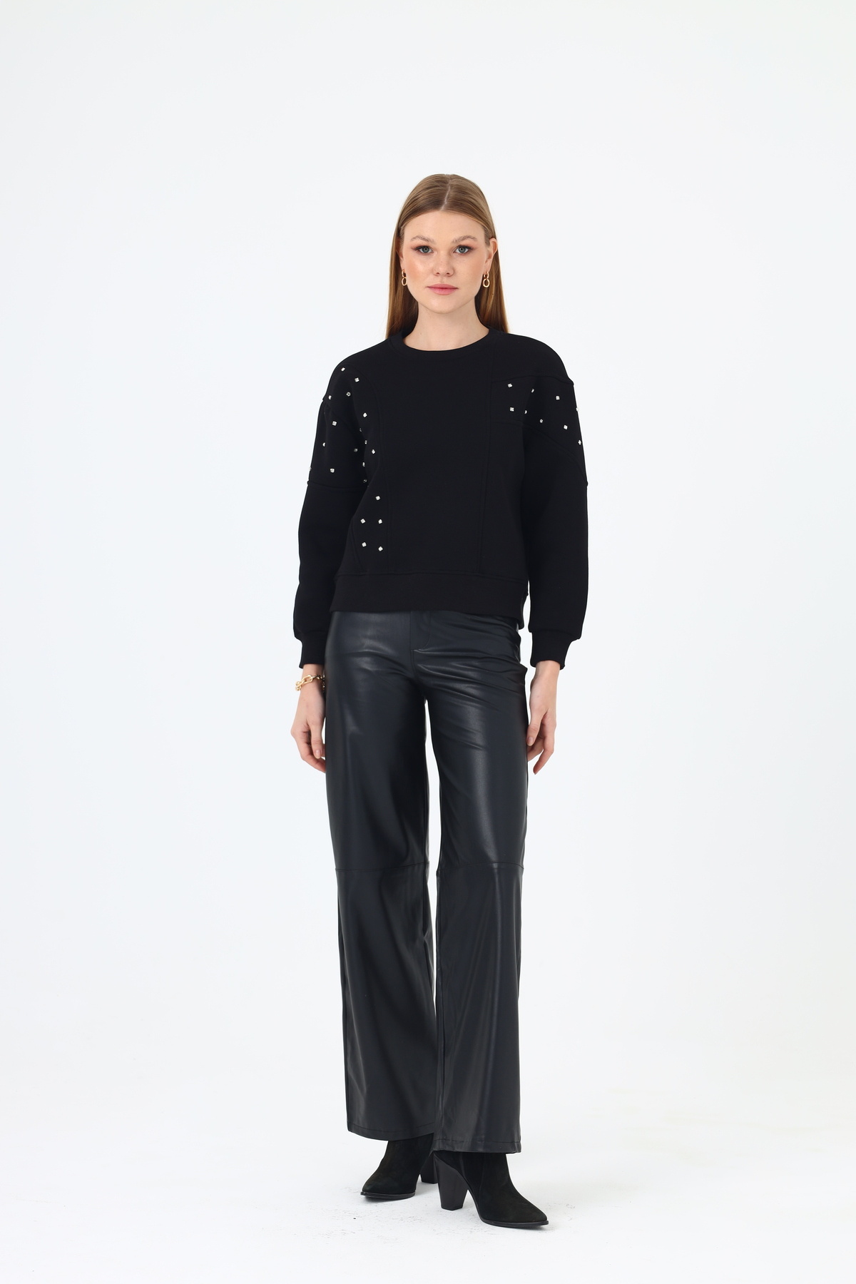 Taş Detaylı Modal Sweatshirt Siyah Taş Detaylı Modal Sweatshirt Siyah 250472SWT XL