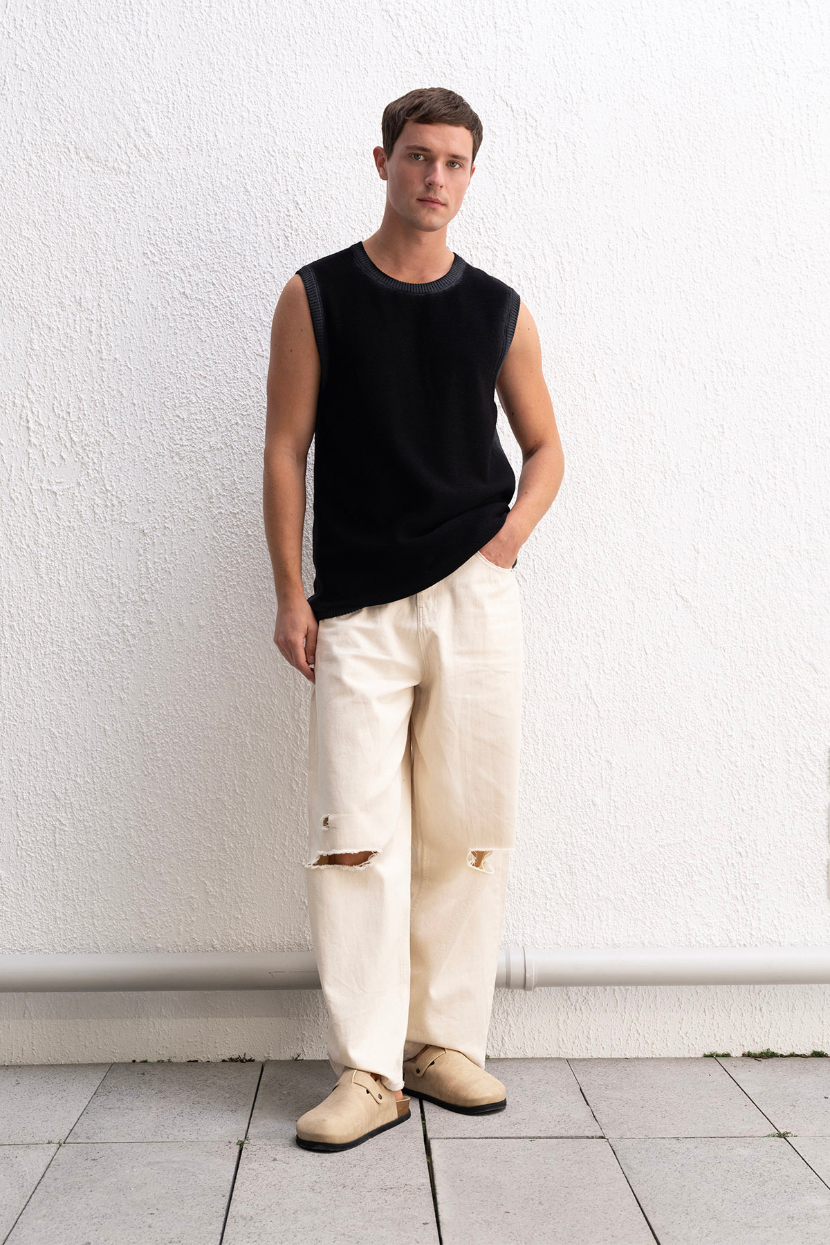 EFEKTLİ KOLSUZ TRİKO LACİVERT T-SHIRT EFEKTLİ KOLSUZ TRİKO LACİVERT T-SHIRT GT202520062 XL