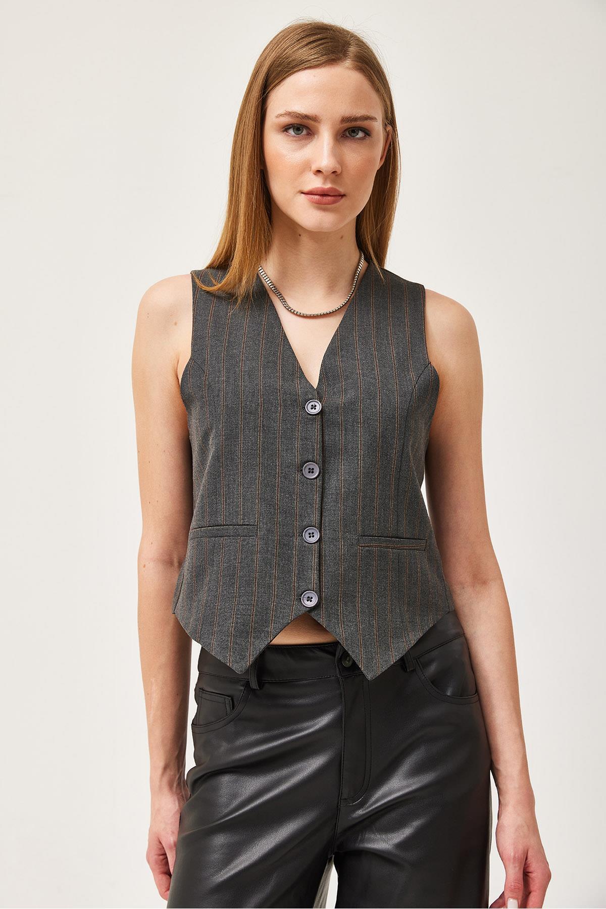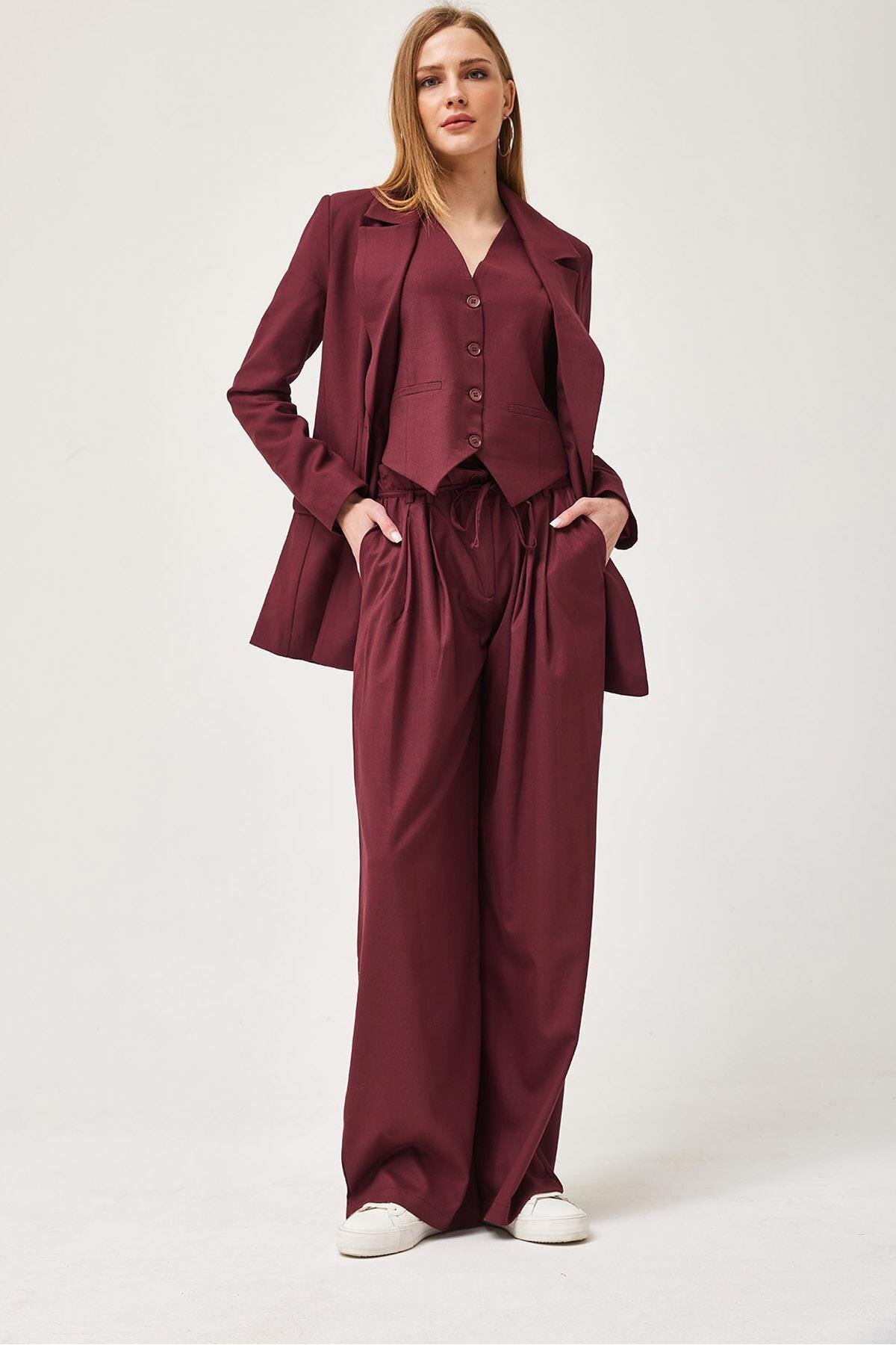 Regular Fit Blazer Yelek Crop Düz Düğmeli Bordo Regular Fit Blazer Yelek Crop Düz Düğmeli Bordo 250369YLK XL