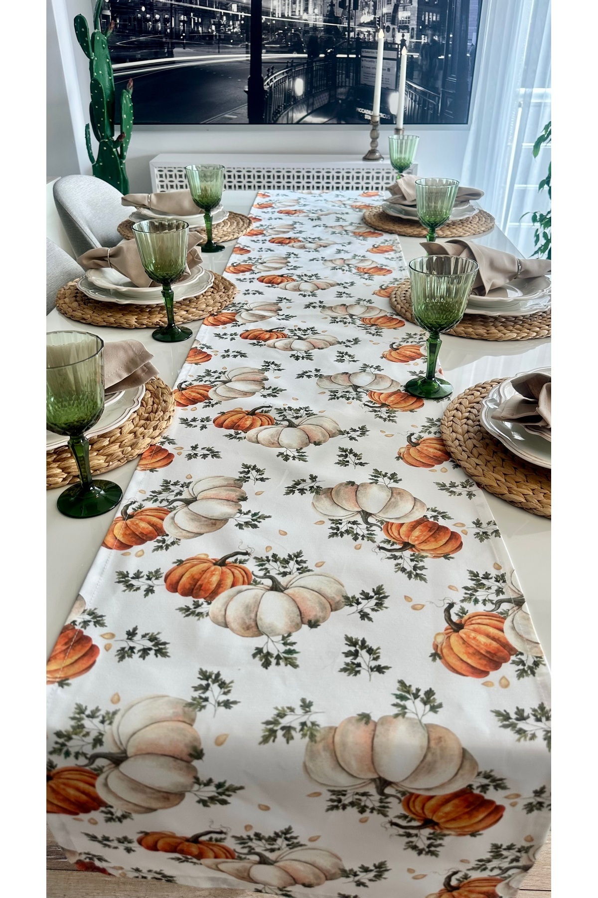 Balkabağı Desenli Dertsiz Ekru Turuncu Runner Balkabağı Desenli Dertsiz Ekru Turuncu Runner bal10 40 x 260