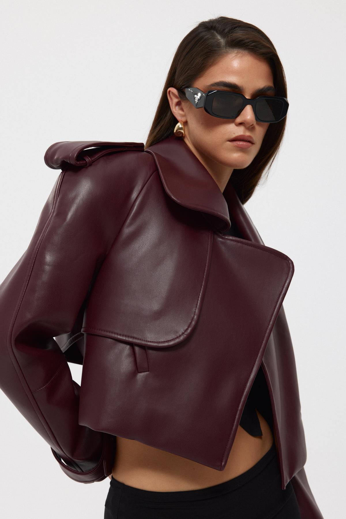 Kol Kemerli Apolet Detay Bordo Head Vintage Deri Ceket Kol Kemerli Apolet Detay Bordo Head Vintage Deri Ceket overderi L