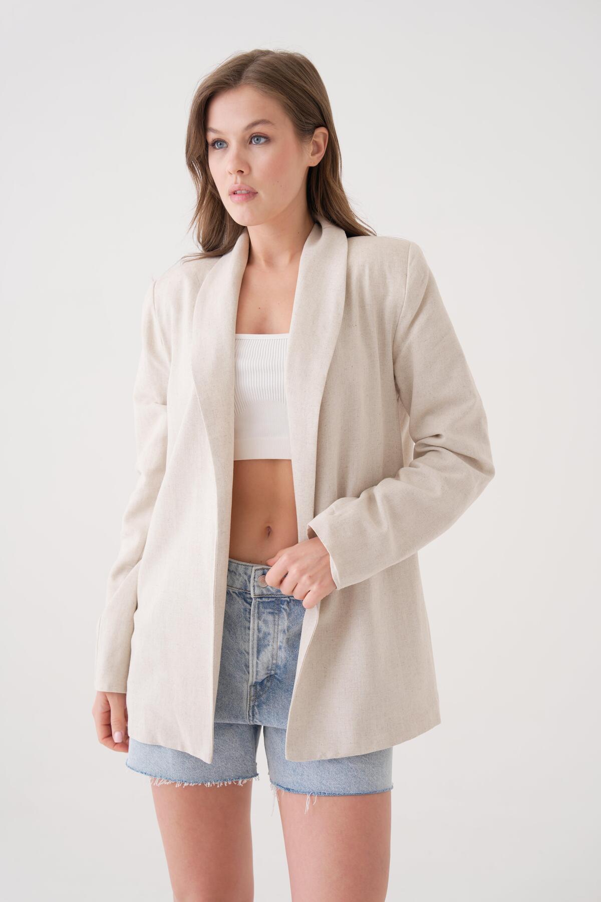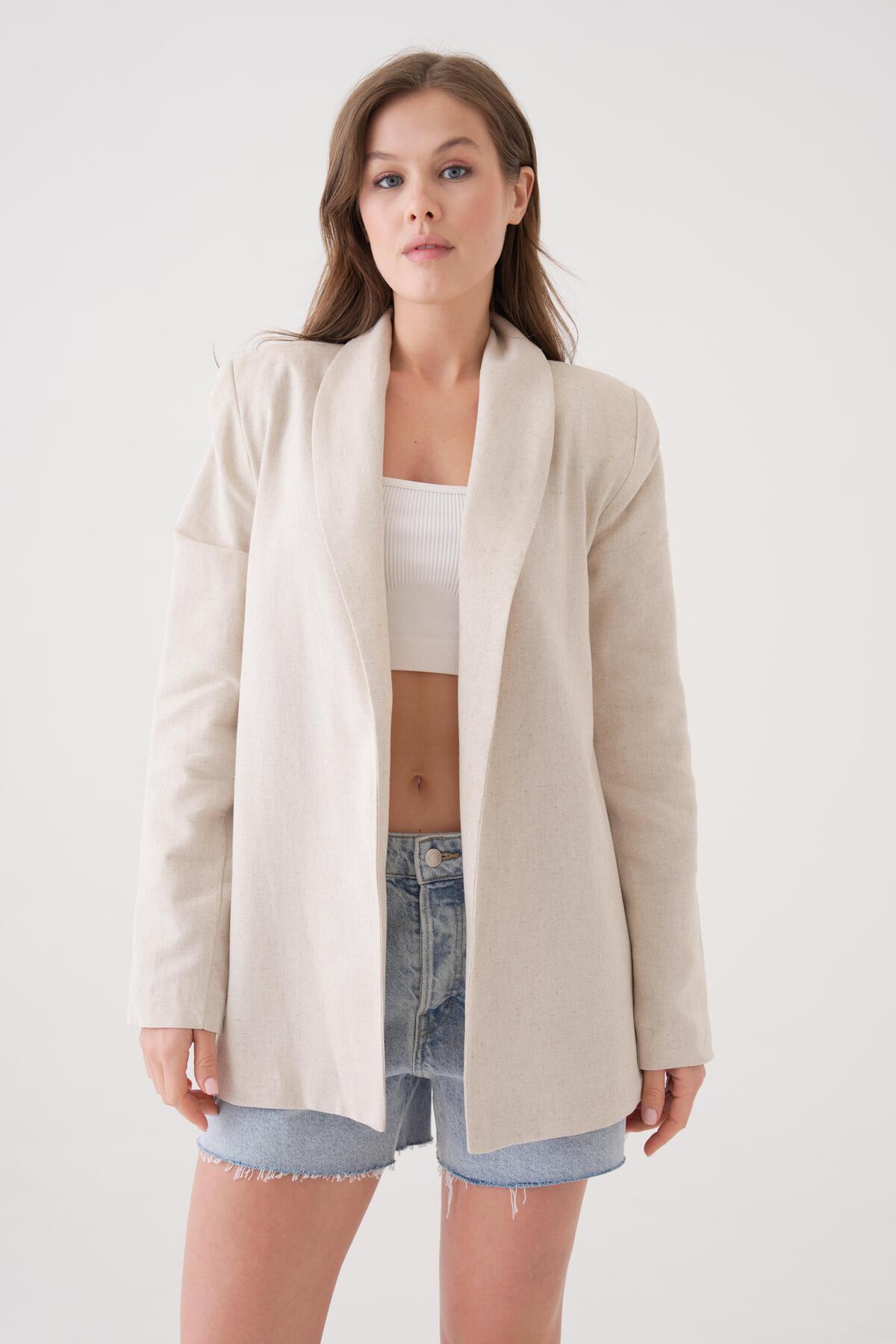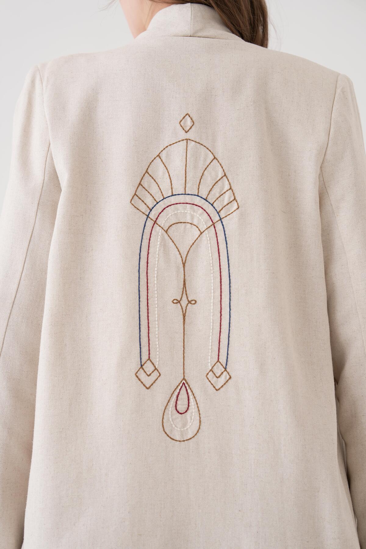Kadın Natur Sırtı Nakışlı Keten Ceket 29074 Kadın Natur Sırtı Nakışlı Keten Ceket 29074 L