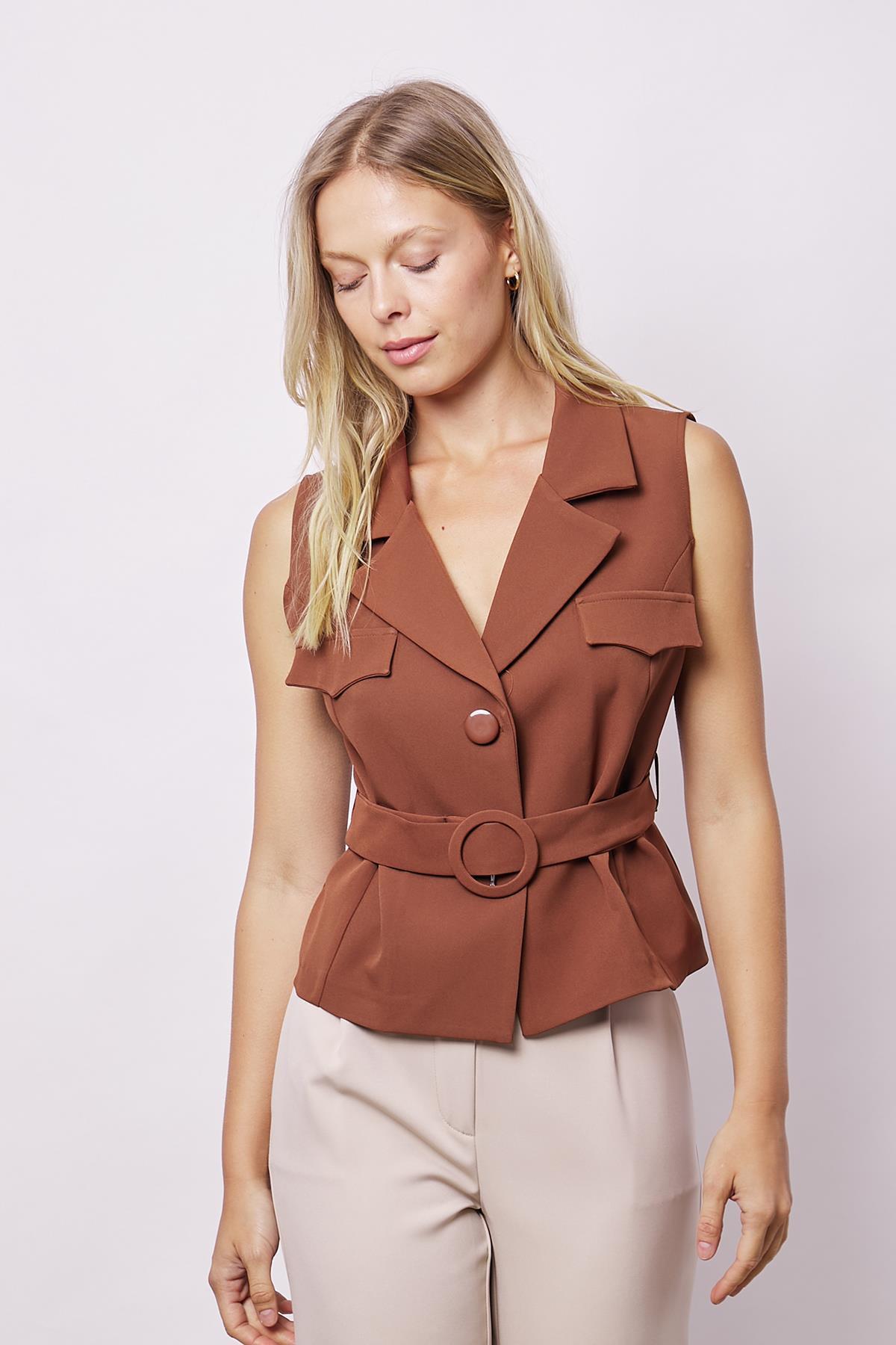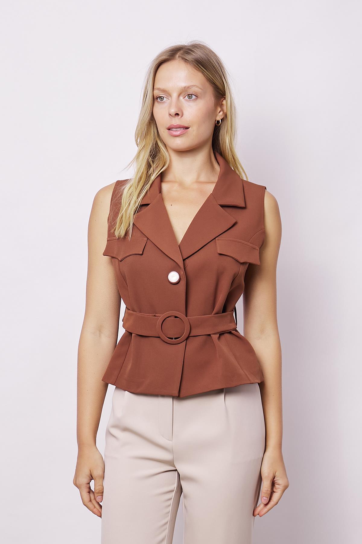 Kadın Yakalı Kemerli(Çıkartılabilinir) Düğmeli Hafif Likralı Şık Kumaş Yelek-Koyu Taba Kadın Yakalı Kemerli(Çıkartılabilinir) Düğmeli Hafif Likralı Şık Kumaş Yelek-Koyu Taba 65016 42