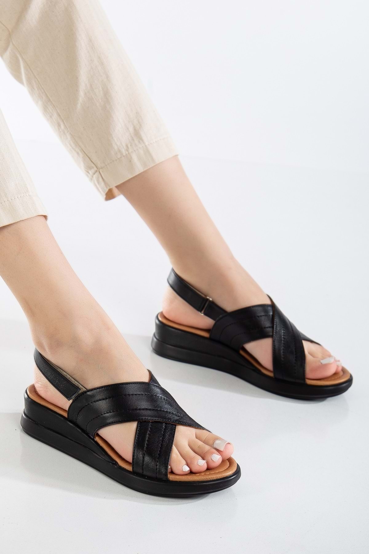 Kadın Hakiki Deri Arkası Cırtlı Sandalet - Bej Kadın Hakiki Deri Arkası Cırtlı Sandalet - Bej 3223 42