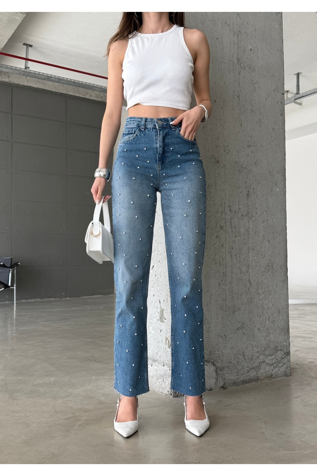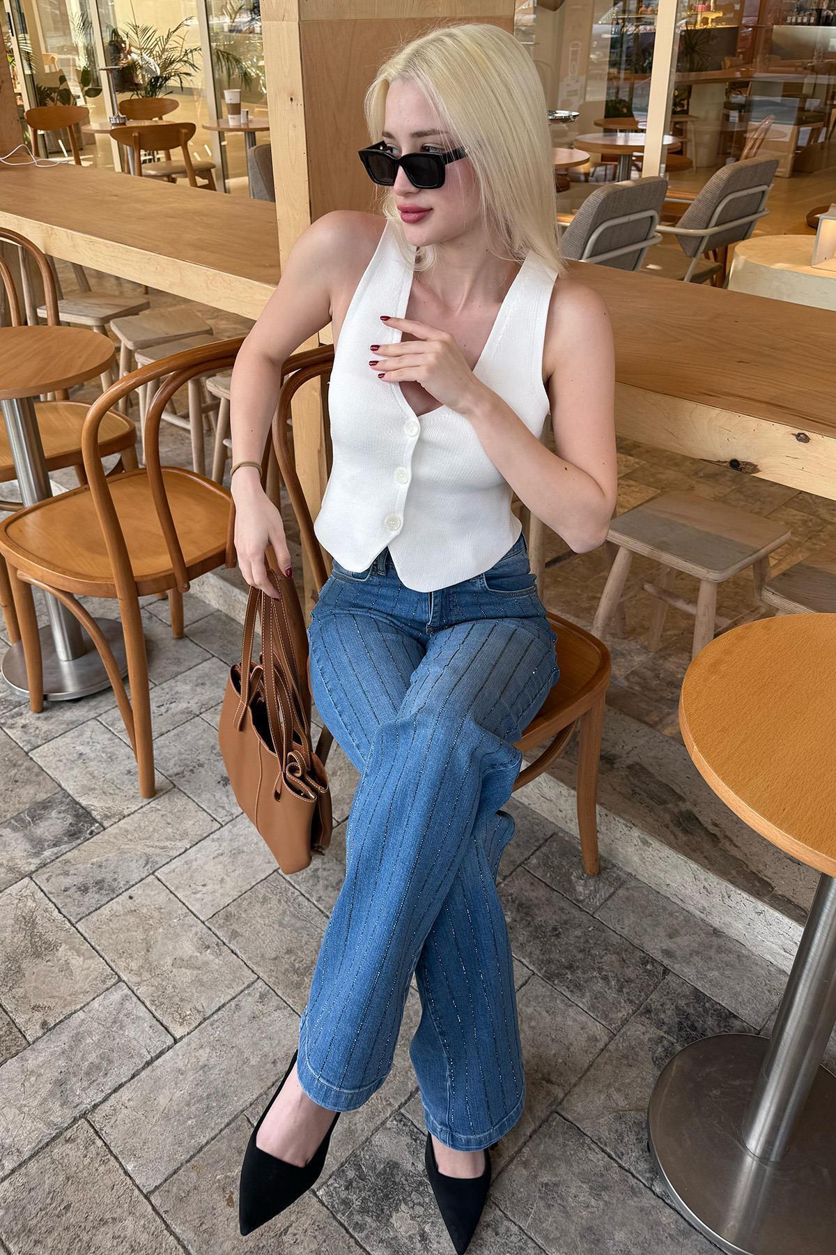 Mavi Yüksek Bel Likralı Taşlı Kadın Jean Pantolon Mg2271 Mavi Yüksek Bel Likralı Taşlı Kadın Jean Pantolon Mg2271 MG2271 33