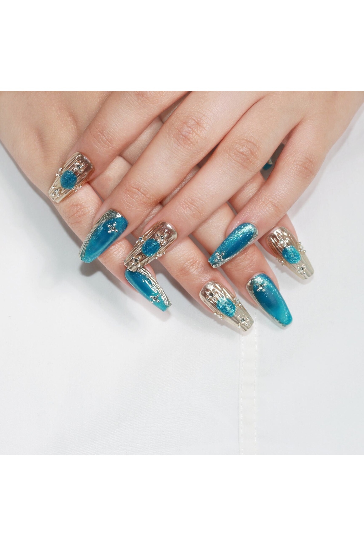 S57 Altın Kırmızı Kedi Gözü Taşlı Takma Tırnak - M S57 Altın Kırmızı Kedi Gözü Taşlı Takma Tırnak - M S57M تک سایز