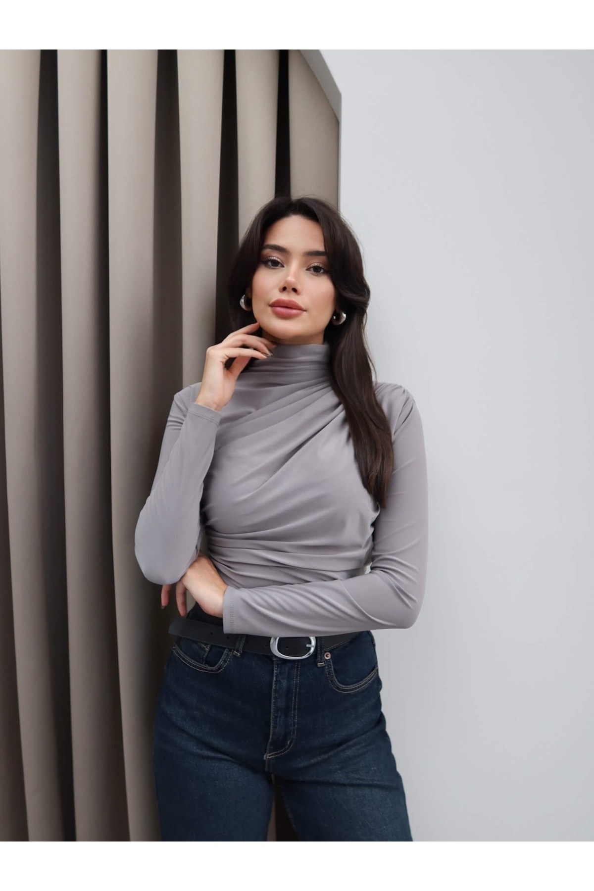 Omuz ve Bel Pile Detaylı Bluz Omuz ve Bel Pile Detaylı Bluz EH-5392 L