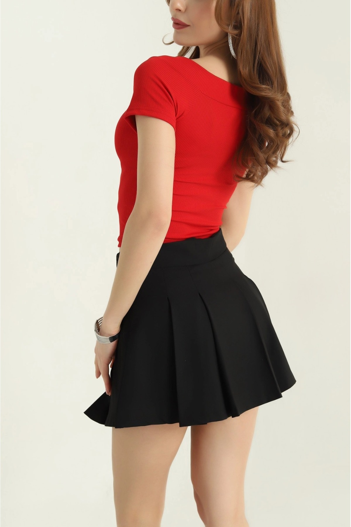Kırmızı Fitilli Likralı Kısa Kol Bluz Kırmızı Fitilli Likralı Kısa Kol Bluz lena 200130 S