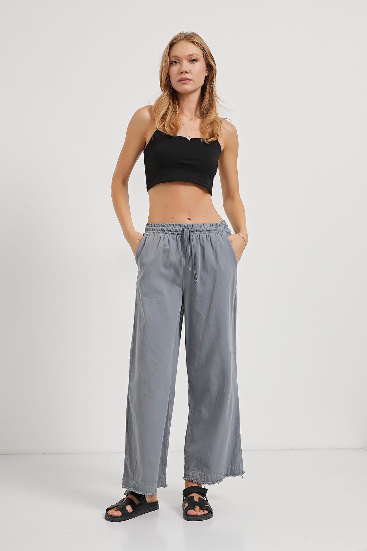 Kadın Beli Lastikli Bol Paça Baggy Haki Pantolon Kadın Beli Lastikli Bol Paça Baggy Haki Pantolon 340-5YB4760PTL XL