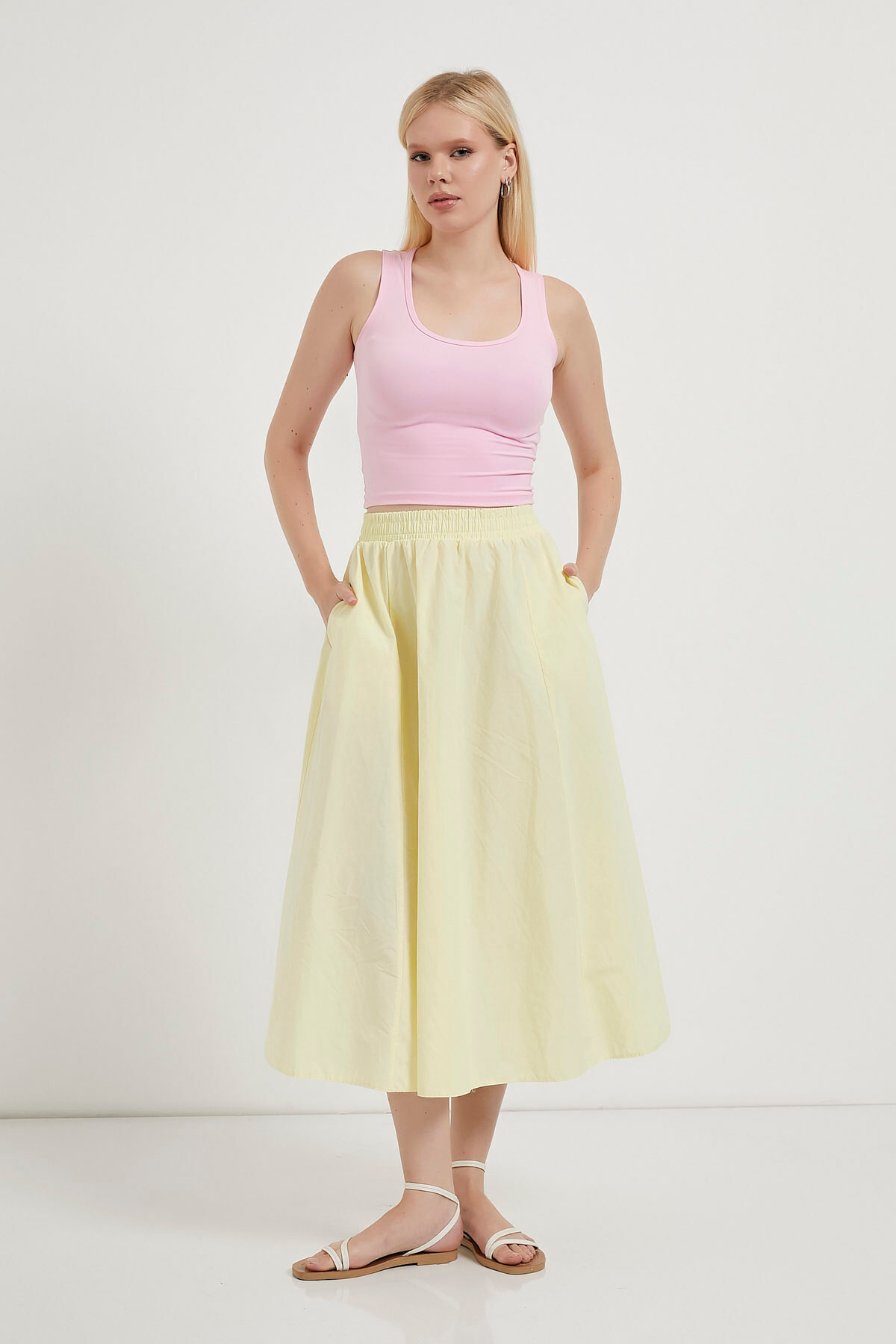 Kadın Cepli Lastikli Kloş Poplin Uzun Gri Etek Kadın Cepli Lastikli Kloş Poplin Uzun Gri Etek 463-5YB3950ETK L