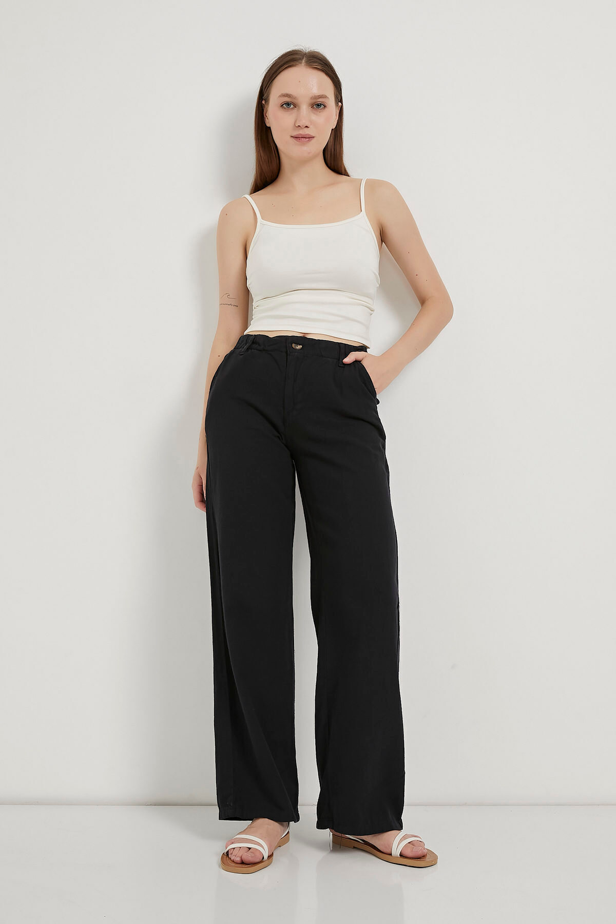Kadın Beli Lastikli Bol Paça Taş Palazzo Pantolon Kadın Beli Lastikli Bol Paça Taş Palazzo Pantolon 340-5YB5193PTL XL