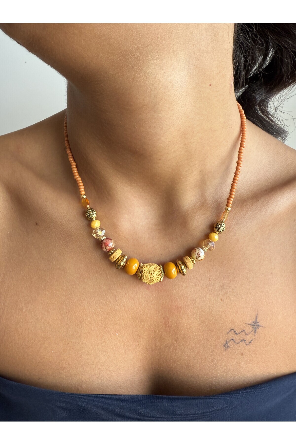 Çok renkli boncuklu taşlı kadın kolye - El yapımı otantik etnik bohem vintage tasarım sarı takı Çok renkli boncuklu taşlı kadın kolye - El yapımı otantik etnik bohem vintage tasarım sarı takı 1869031830 تک سایز