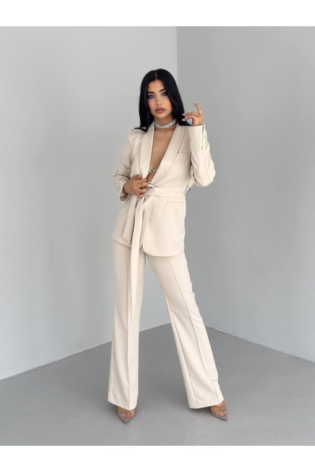 Beli Kuşaklı Blazer Ceket Pantolon Takımı - Şık, Zarif ve Her Ortama Uygun Kadın Seti Beli Kuşaklı Blazer Ceket Pantolon Takımı - Şık, Zarif ve Her Ortama Uygun Kadın Seti S-T-M-T-3047 42
