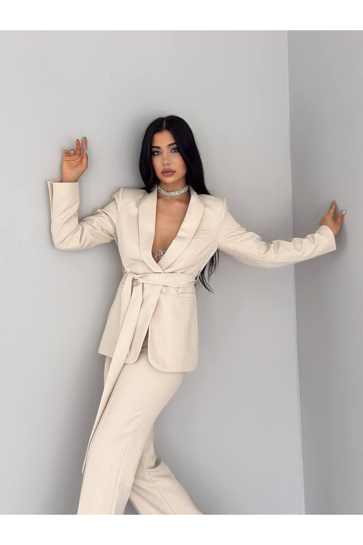 Beli Kuşaklı Blazer Ceket Pantolon Takımı - Şık, Zarif ve Her Ortama Uygun Kadın Seti Beli Kuşaklı Blazer Ceket Pantolon Takımı - Şık, Zarif ve Her Ortama Uygun Kadın Seti S-T-M-T-3047 42