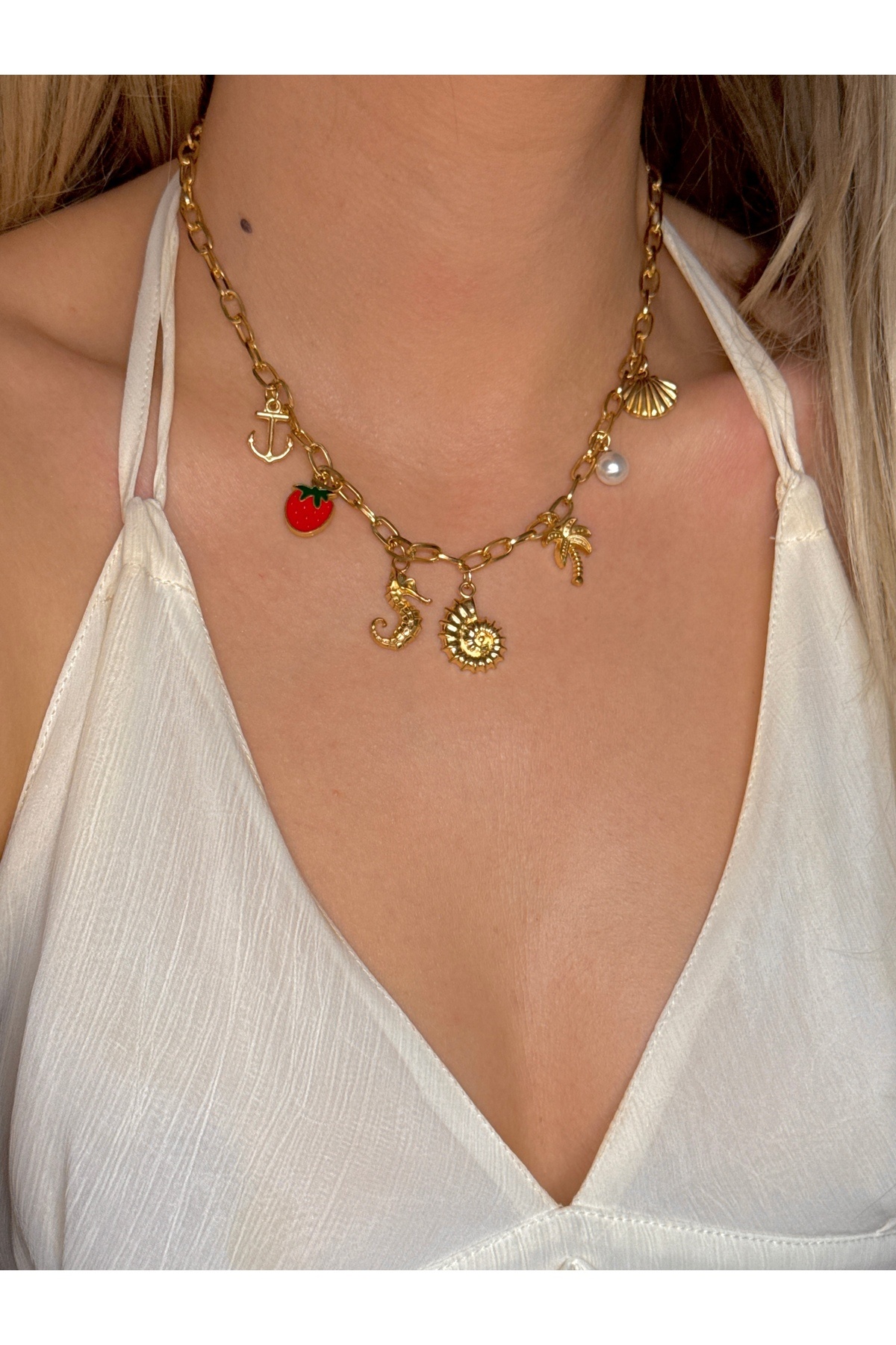 Çelik Gold Renk Halka Zincir Zirkon Taş Detaylı Fatma Ana El Figür Güneş Detay Kadın Kolye Çelik Gold Renk Halka Zincir Zirkon Taş Detaylı Fatma Ana El Figür Güneş Detay Kadın Kolye .BKO9851. 45 cm