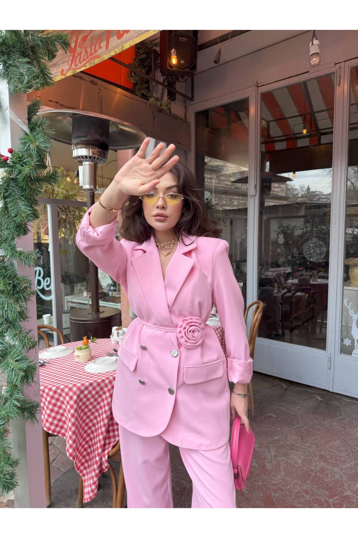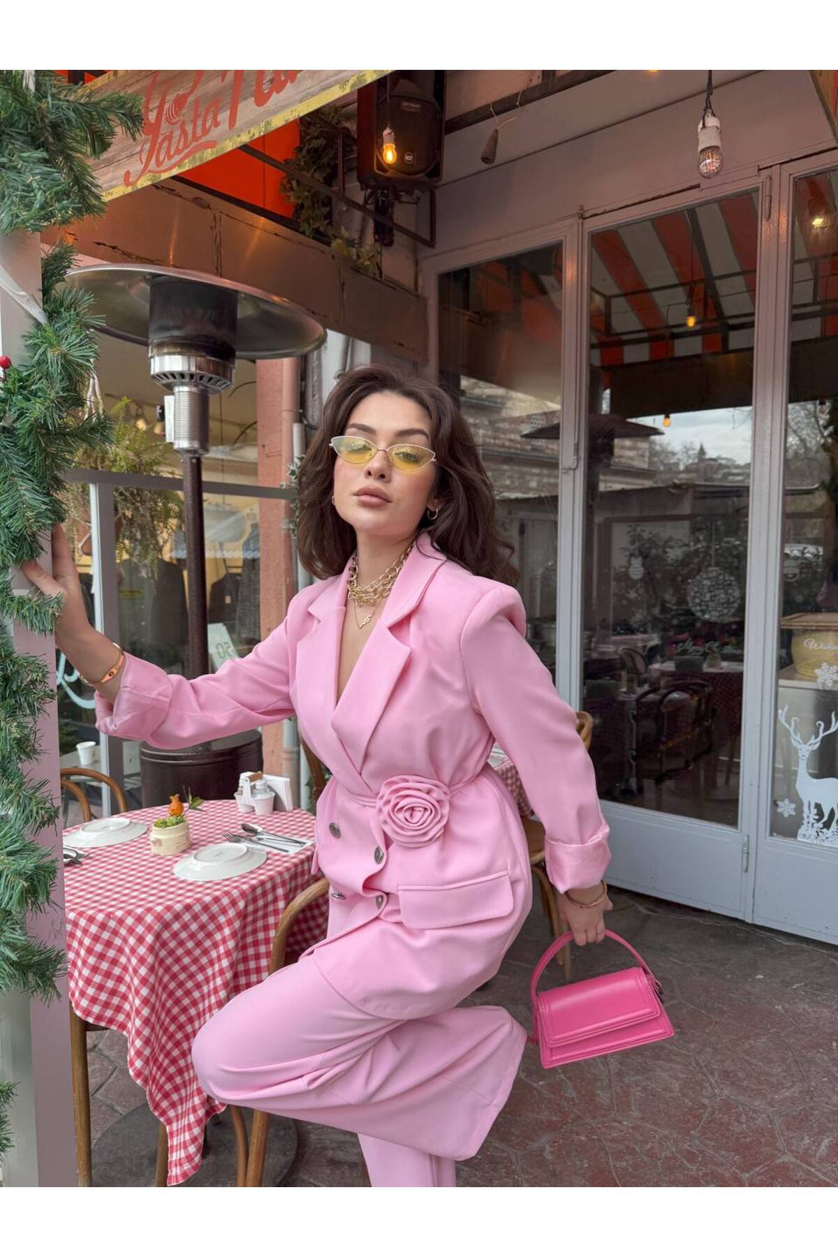 Gül Detaylı Kemerli Blazer Ceket & Pantolon Takım - Şık ve Zarif Kadın Kombini Gül Detaylı Kemerli Blazer Ceket & Pantolon Takım - Şık ve Zarif Kadın Kombini S-T-M-T-3105 42