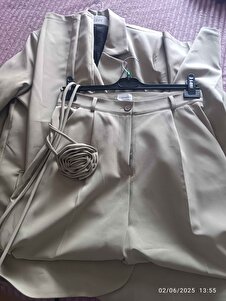 Gül Detaylı Kemerli Blazer Ceket & Pantolon Takım - Şık ve Zarif Kadın Kombini Gül Detaylı Kemerli Blazer Ceket & Pantolon Takım - Şık ve Zarif Kadın Kombini S-T-M-T-3105 42