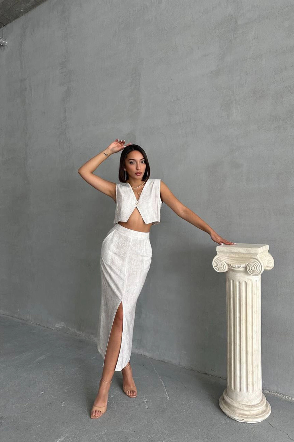 Kadın Ekru Düğmeli Bluz Ve Etekli Kendinden Dokulu Alt Üst Takım Bchn-25255013 Kadın Ekru Düğmeli Bluz Ve Etekli Kendinden Dokulu Alt Üst Takım Bchn-25255013 BCHN-25255013 42