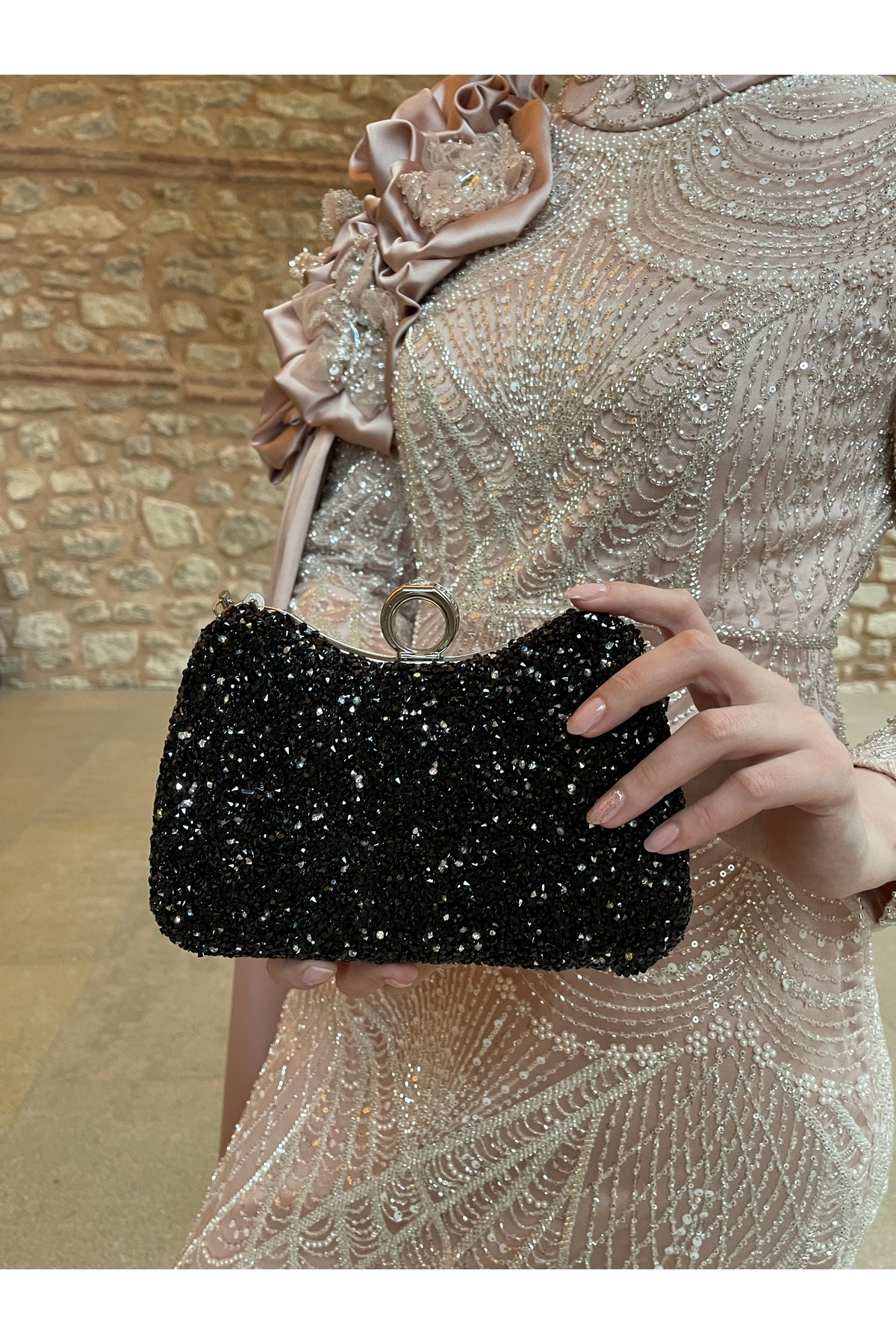 Büka Kadın Siyah Taşlı Parmak Geçmeli Şık Abiye Çanta Büka Kadın Siyah Taşlı Parmak Geçmeli Şık Abiye Çanta 20202 تک سایز